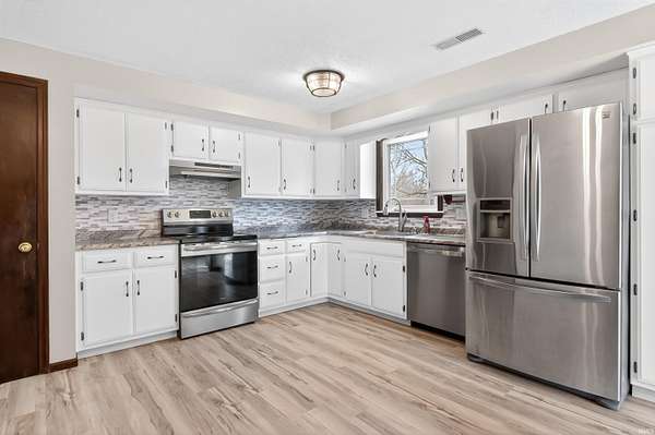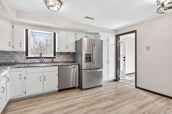 This is a rare opportunity to own 3.3 total acres in Fort Wayne with no HOA and no septic system. The property consists of two separate legal parcels. The house sits on 1.792 acres and the adjacent 1.516-acre parcel is included in the sale. This 5-bedroom, 3-full bath home is move-in ready with extensive improvements. A brand-new roof was installed in early 2026. The siding and HVAC system are both less than five years old. Inside, the upper level features brand-new carpet and fresh updates. The kitchen and dining room have new flooring. The kitchen update includes new countertops, a new dishwasher, painted cabinets with new hardware and a modern tile backsplash. The walk-out basement offers a large second living area with a fireplace and newer carpet. Outside, you have a deck and a lower patio overlooking a woods and a creek. You get the privacy of a country estate while staying just minutes from shopping and dining. Located in the highly-rated Leo School district.