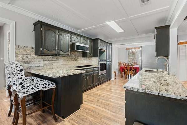 Welcome to 5707 State Highway 22, Hillsboro, TX 76645 -- a beautifully reimagined ranch-style home offering the perfect blend of comfort, style, and country living. Nestled on 2.296 acres in the heart of Hill County, this spacious single-story residence features approximately 1,900 square feet with three bedrooms, two and a half baths, and a warm, open-concept layout designed for modern living. From the moment you step inside, you'll appreciate the thoughtful updates that preserve the home's character while adding contemporary appeal. The kitchen boasts hand-sanded and stained original wood cabinets, rich granite countertops, and a seamless flow into the dining and living areas -- ideal for both family gatherings and entertaining. The living room features elegant coffered ceilings that add charm and dimension, while large windows invite in plenty of natural light. The primary suite offers a private retreat with a spacious ensuite bath, and the additional bedrooms are equally inviting and versatile. Outside, enjoy the serenity of your expansive 2.296-acre lot -- perfect for gardening, outdoor entertaining, or simply soaking in the Texas countryside. The property also includes a two-car garage, ample driveway parking, and room to expand or customize as desired. Conveniently located just minutes from downtown Hillsboro, this home offers peaceful rural living with easy access to shopping, dining, schools, and major highways connecting you to Dallas, Fort Worth, and Waco. Whether you're seeking a family home, a quiet retreat, or a place to grow, 5707 State Hwy 22 delivers charm, space, and convenience all in one. Come experience the best of Texas country living -- schedule your private showing today!
