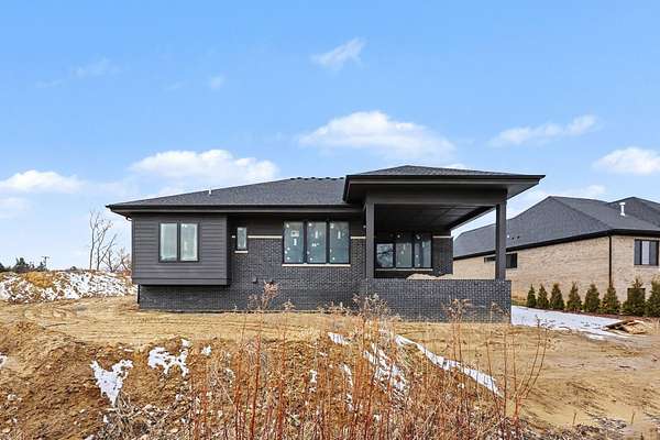 AVAILABLE NOW | EST. APRIL 2026 COMPLETION. A modified version of the popular ''Kirkwood'' floor plan offering 3 bedrooms, 2.5 baths, and over 2,500 sq ft of finished living space. The home features top-tier finishes throughout, including wood flooring and quartz countertops. The gourmet kitchen includes premium cabinetry, stainless steel appliances, a custom wood hood, and beverage center. Soaring 10' ceilings and 8' interior doors enhance the open feel. The Owner's Suite offers a luxurious bath with his-and-hers vanity, spacious walk-in shower, freestanding tub, and dual walk-in closets. Two additional bedrooms are located on a separate wing and share a Jack-and-Jill bath. Additional highlights include an oversized 2.5-car garage, staircase from the garage to the basement, and a covered patio. Price includes stainless steel kitchen appliances, sod, sprinklers, and front landscaping.