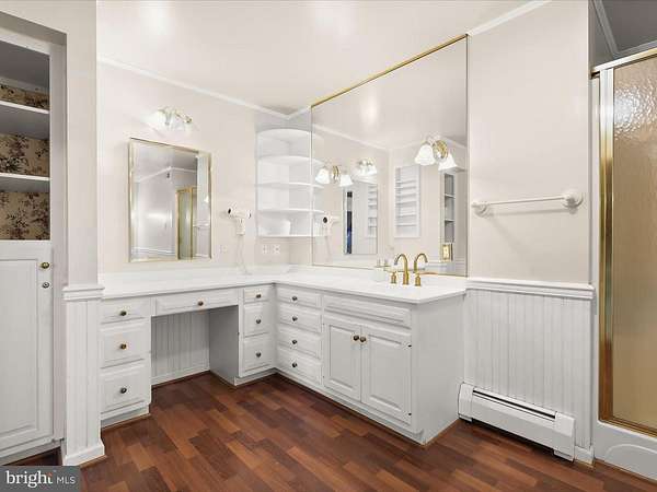 - Additional Stairway, Breakfast Area, Built-Ins, Chair Railings, Crown Moldings, Dining Area, Eat-In Kitchen, Island Kitchen, Pantry, Primary Bath(s), Recessed Lighting, Upgraded Countertops, Walk-In Closet(s), Wood Floors