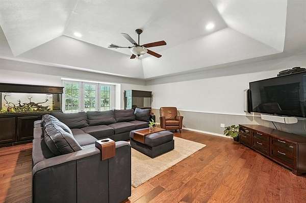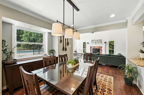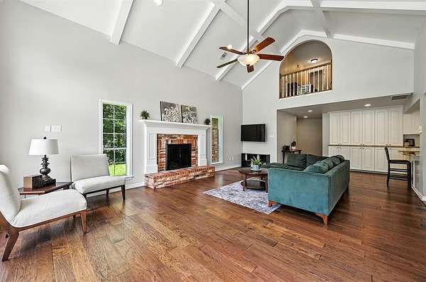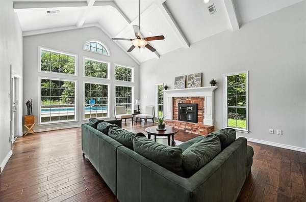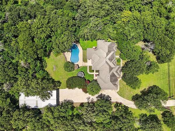 Nestled on a serene, 1.6-acre wooded lot, this custom-built home offers the perfect blend of luxury and functionality. The gated entry and fully fenced perimeter creates a sense of seclusion, while the heavily wooded surroundings provide natural beauty and shade. Home has an open floor plan with soaring ceilings and expansive windows that fill the home with natural light, highlighting the warm tones of the wood floors and the brick wood-burning fireplace that anchors the spacious living room. The chef's dream kitchen is truly the heart of the home, featuring granite counters, two dishwashers, two ovens, a 36" induction cooktop, a built-in Viking refrigerator, and a second built-in Sub-Zero refrigerator in the laundry room. Whether you're hosting a small gathering or entertaining a crowd, this kitchen will handle it all. Cabinets off the living room even have a fun hidden door feature for kids to explore the closet under the stairs. The home also offers two washer and dryer hookups, perfect for multitasking on busy days. There is a closed formal dining that is currently being used as a study and is a great flex space to suit your specific needs. Large primary bedroom is downstairs and offers a beautiful bathroom and walk in closet. Retreat outdoors to enjoy the in-ground pool on the large, treed lot. Need a workshop or extra storage? You'll love the insulated shop with full electric service and backup generator ports--a rare and valuable feature that will assist in keeping the power on if it goes out. The home is equipped with whole-house surge protection and a central vacuum system, ensuring convenience and peace of mind. Home also has a large walk-in attic that could easily be converted in the future to a bonus room. Home is pet friendly and features a custom large dog door. Whether you're enjoying the amenities inside, or relaxing poolside in the shade of towering trees, this home has it all. Don't miss your chance to own this truly special retreat.