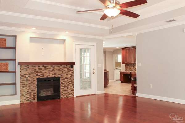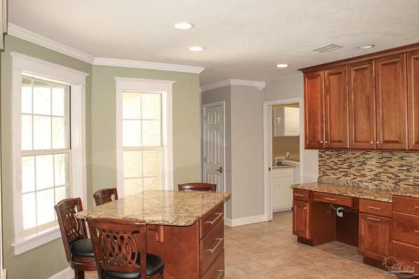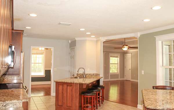 Welcome to this charming 3-bedroom, 2-bath country home where comfort and style come together. The inviting front porch is perfect for relaxing afternoons with a glass of sweet tea. Inside, the living room features a cozy gas fireplace, built-in audio wiring, and a Nest thermostat. Pocket doors throughout maximize space, and the layout flows seamlessly into the kitchen, breakfast nook, and dining area. The kitchen offers granite countertops, stainless steel appliances, built-in microwave, cooktop with double oven, soft-close cabinets and drawers, a built-in desk, and a moveable island with matching finishes. The primary suite feels like a retreat with a double tray ceiling, plantation shutters, and an oversized walk-in closet. The en-suite bath includes a jetted soaking tub, tiled walk-in shower, separate vanity counter, and custom cabinetry. Two additional bedrooms feature crown molding and generous closets, with a built-in organizer in the front bedroom. Both bathrooms include heated commode seats and bidets. The laundry room includes a double sink and LG top-load washer. Outside, enjoy an enclosed Gunite pool, a 12x14 workshop with electricity, and a 24x32 covered parking slab. HVAC was replaced in 2012 and the roof in 2015. This home blends country charm with modern convenience-ready for you to make it your own.