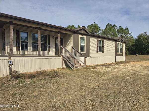 Situated on just over 7 acres, this 4-bedroom, 2.5-bath manufactured home offers plenty of space, comfort, and room to enjoy the outdoors. With open surroundings and a relaxed setting, this property strikes a great balance between privacy and convenience. Inside, the home features a large kitchen with a center island, perfect for everyday meals or gathering with family and friends. The spacious living room, complete with a fireplace, creates a comfortable place to unwind. The primary bedroom is generously sized and includes a large walk-in closet and a private bathroom with a soaking tub, double vanity, and large walk-in shower. The additional bedrooms offer flexibility for guests, kids, or a home office. Step outside to enjoy the large front porch, ideal for relaxing and taking in the peaceful surroundings. The property also features a large pond, adding to the natural appeal, and is located less than half a mile from a boat ramp on the Chipola River, making it easy to enjoy boating, fishing, and the outdoor lifestyle North Florida is known for. This is a great opportunity to own a spacious home on acreage with water features and easy access to the river.