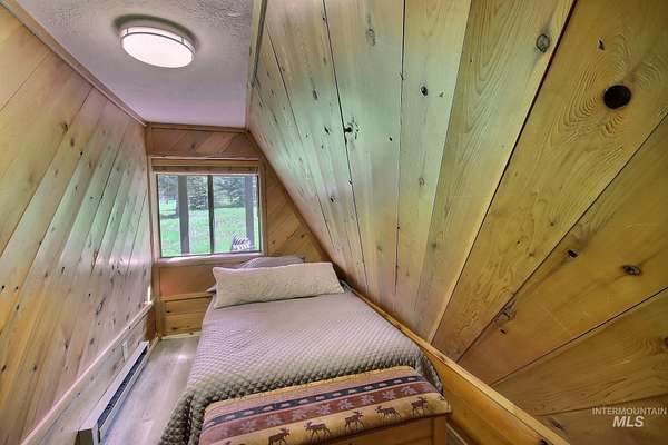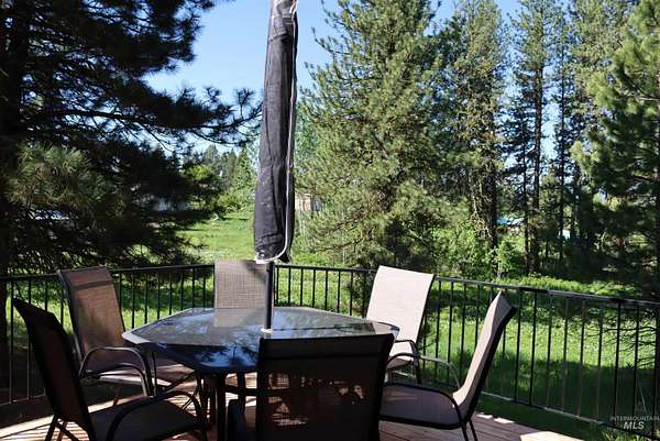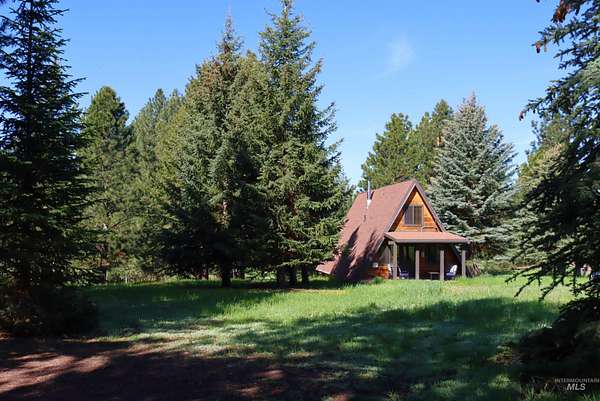 Set on two wooded lots just outside McCall city limits, this classic A-frame offers privacy, flexibility, and direct access to outdoor adventure. The home sits on a double lot, giving you the option to enjoy it now as a mountain getaway while planning or building on the adjoining acre. A seasonal stream runs along the property's edge, opening to a wide meadow filled with wildflowers in summer. The property has no CC&R's, providing freedom to expand, build a shop, or create a second dwelling. Inside, the home has been updated with a modern kitchen and refreshed bathrooms. The main level features an open living area anchored by a wood stove for cozy winter nights. The large back deck overlooks the meadow and creek; for barbecues, & evenings around the firepit. Upstairs, two bedrooms and a full bath offer comfortable space for guests, one featuring a Romeo & Juliet balcony with forest views. Just beyond your door explore miles of trails and recreation in the Payette National Forest, with easy access to Boulder Lake Trailhead for hiking, biking, or backcountry skiing. This rare 2-acre property blends mountain charm with opportunity for all that McCall has to offer.