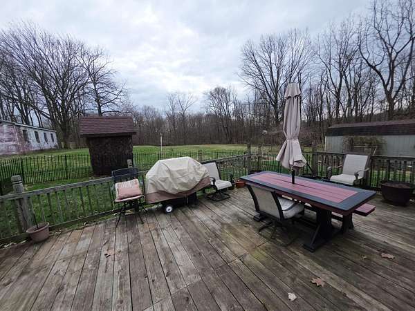 Est $1,253/moWhat a rare find! Clean and well kept 2 story home situated at the end of a dead end street. Offering 4.7 acres with beautiful yard and wooded sloped lot. Partially fenced yard for family pets plus privacy fencing for added seclusion. Ample space for gardening. Spacious back deck and enclosed patio creates additional living space. Many updates. Huge concrete driveway and 30x24 attached garage with storage. This property offers comfort, character, and room to roam. Property is being sold as-is.