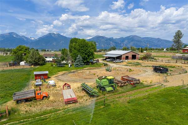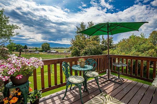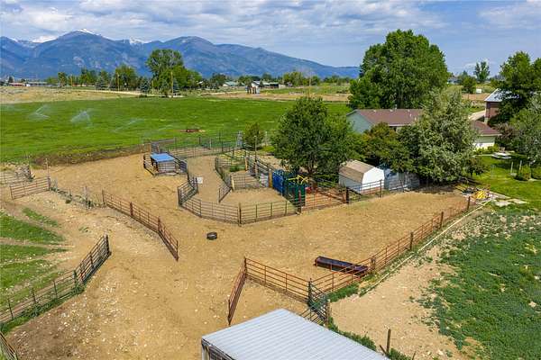 Experience peaceful country living on this versatile 5-acre property in Stevensville with the option to purchase an additional separate 4.84-acre parcel directly across the road, for a total of 9.84 acres. The well-maintained 3-bedroom + bonus room, 2-bath split-level home is move-in ready and offers sweeping mountain views from the back deck overlooking a beautifully landscaped yard with fruit trees, including apple and cherry, plus a garden area. Enjoy relaxing or entertaining under the backyard pergola surrounded by mature trees. Perfect for horse enthusiasts, the property includes a 20 x 44 shop with 220 power and loft storage, plus an attached 44 x 60 stall barn with metal dividers and 20 x 60 lean-to, ideal for horses or a potential boarding setup. Additional features include fenced pasture, corral area, and loafing sheds. Irrigation on the home parcel is provided by BRID gravity irrigation with handline no pump bill. The additional 4.84-acre parcel is fenced and irrigated under BRID with a wheel line and is offered for $350,000, creating even more potential for expanded horse setup, hay ground, or additional usable acreage. All just minutes from town and conveniently located off a paved road, this is a rare opportunity to own a functional and scenic property with space for animals, projects, and country living at its best.