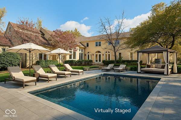 This exceptional 6 bedroom estate in the Brendonwood neighborhood is sure to take your breath away! Rarely does an opportunity like this arise in one of Indy's best kept secret areas. Across from Cathedral High School, this gem sits atop a hill on over 3 wooded acres offering scenic views from every window! Something for everyone - a gourmet kitchen for the chef, incredible architectural details for the designer/artist, an insane closet for the fashionista, a home gym AND indoor sports court for the athlete, multiple recreation rooms for the entertainer, indoor/outdoor living spaces for the nature lover... not to mention bonus space for your in-law(s) or au pair quarters! This neighborhood has a rich historical significance and offers the best amenities including gated entry/security, a private 9 hole golf course, 44+ acres of nature preserve, pool, bocce ball and numerous social events! The home itself features steam showers, multiple secret doors, soaring ceilings with a Juliette balcony and grand staircase, water features, a hot tub, a home theater, built in grill, firepit and more! New Andersen windows/doors - 2017, Roof - 2020 plus (3) new furnaces/ac units in 2024!