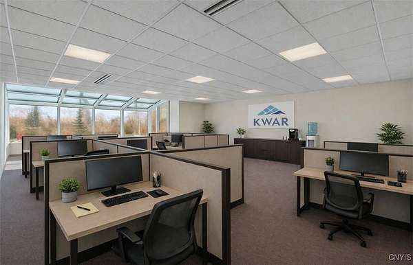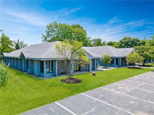 Professional commercial space available at Towpath Commons. Gorgeous, one-story Class A professional building in a highly desired location near Widewaters Parkway with one 1,000 SF space available. Impeccably maintained and featuring a newly remodeled kitchen, recently painted exterior, access to shared restrooms, a conference room, and an outdoor patio. Located along a scenic running trail to the Erie Canal and close to restaurants and cafes. Approximately four minutes to major highways and a short drive to downtown Syracuse. Plenty of free parking, no stairs, and excellent accessibility. Gross lease-landlord pays heat, air conditioning, and electricity. Located in East Syracuse within the Jamesville-DeWitt School District.