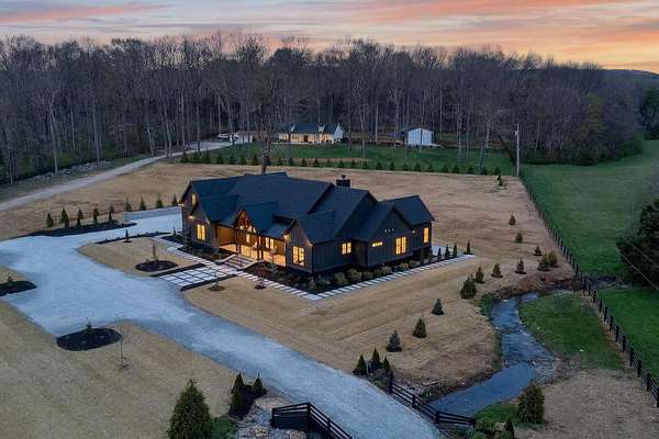 Welcome to a truly exceptional luxury estate in Chapel Hill, TN, where elegant design meets modern convenience. Every detail has been carefully curated for both grand entertaining and comfortable everyday living. Situated on 5 level, fully usable acres, this remarkable property offers thoughtfully designed living space both in and outdoors, featuring 4 bedrooms, 6 bathrooms, and a seamless blend of elegance, function, and privacy. From the moment you arrive, the setting makes a lasting impression. Peace, serenity and beauty describe what you see. A scenic creek running through the property enhances the natural surroundings. Inside you are welcomed by a light-filled, open-concept layout. At the heart of the home is the stunning great room, anchored by a stone fireplace that creates an inviting atmosphere perfect for relaxing evenings or hosting guests.The kitchen is nothing short of extraordinary. A striking quartzite countertop island, a classic farmhouse sink with pass through window to the outdoor kitchen, autodraw microwave, walk in pantry, a premium suite of appliances- Wolf dual fuel cooktop/oven, Cove Dishwasher, Sub-Zero refrigerator. The main-level owner’s suite provides a private and luxurious retreat. Designed for comfort and relaxation, this space offers a peaceful escape from the rest of the home. The en suite bath features dual vanity sinks and a spa like double walk in shower. Other bedrooms offer their own full baths making one a perfect option for in law quarters. Main home office is equipped with two built in desks and its own private entrance. Upstairs you'll find a large bonus/media room with wet bar and full bath. Here you'll also find more than ample storage in the attic space. Step outside to experience one of the home’s most impressive features, the expansive outdoor living space. Anchored by a fully equipped built-in kitchen, you'll also find 3 gas heaters and automatic screens to fully enclose the space. See features sheet, Don't Miss This!