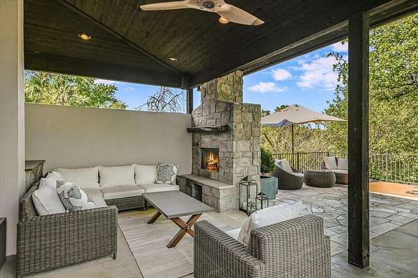 Situated on 1.55 +/- acres, this Lake Travis estate exudes privacy for your very own escape on the lake. The 4-bed, 4-bath home features a home office, chef’s kitchen with Viking appliances, a Bose surround system, gated entry, and even a FAA licensed Helipad. Floor-to-ceiling windows frame hill country and lake views, while the kitchen includes custom cabinetry, gas range, dual ovens, and a large walk-in pantry. The main-level suite boasts pool views, tall ceilings, custom California Closets, soaking tub, walk-in shower with rainfall head, and outdoor access. Upstairs offers a spacious flex area, 3 bedrooms and 2.5 baths, and two spacious patios. Outside, enjoy a modern pool and spa, built-in grill, covered and uncovered seating, a bocce ball court, and multiple entertaining areas. There is 250+/- sq ft of additional storage outside. At the water’s edge, relax by the picnic tables or at your private boat dock in a quiet cove on Lake Travis.