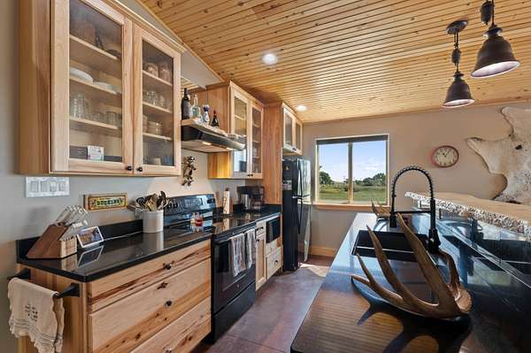 The property is well improved with a new metal building featuring 2-bedroom, 2-bath living quarters and a massive shop/garage, ideal for ranch operations or guests. A remodeled 2-bedroom, 2-bath ranch home provides additional comfortable living, and a large metal garage/barn supplies ample equipment storage.