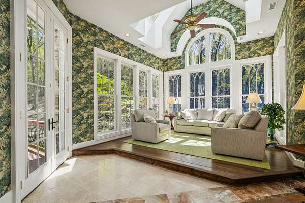 Sunroom: Recently updated with new custom wallpaper, connecting nature indoors.