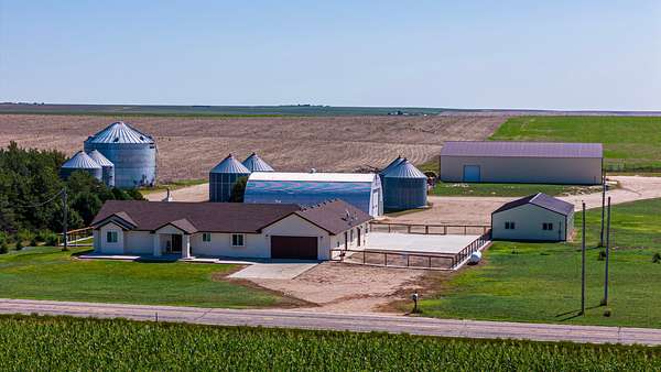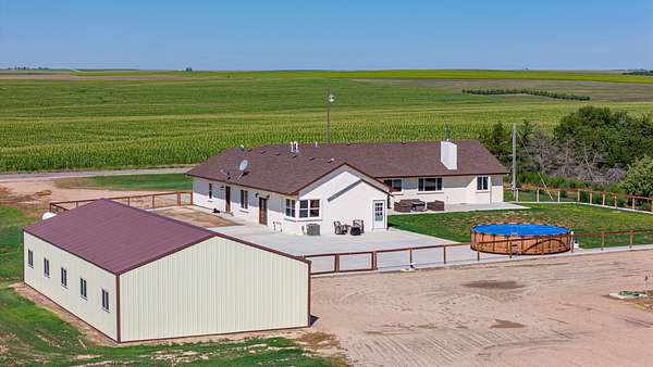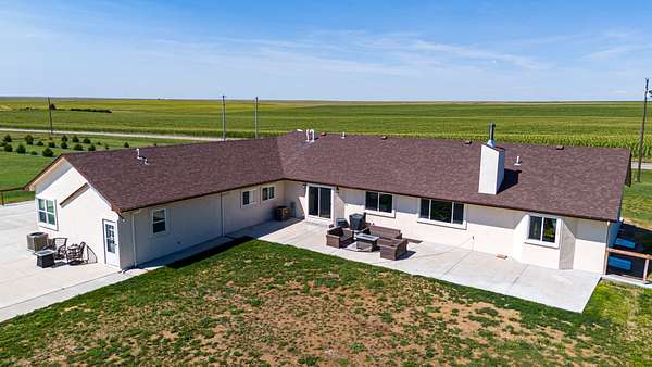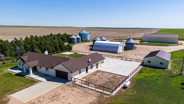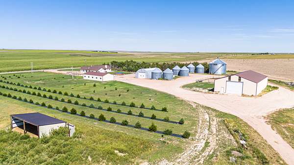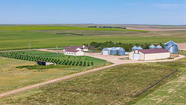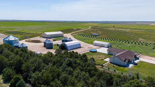 The Jones Farm offers 160+- acres with a 4,620 sq ft custom home, guest house, multiple outbuildings, and 7 grain bins. Located 17 mi N of Otis and 20 mi SE of Sterling, CO, this turnkey farm features top-tier improvements, open farmland, and a private, treed homesite. Ideal for farming, livestock, or a rural family headquarters in Colorado's productive Eastern Plains.