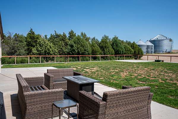 Covering 160+- acres, The Jones Farm offers a balance of production, privacy, and rural lifestyle in a scenic country setting. The homesite is thoughtfully positioned amid mature tree rows on the north and south, offering protection from prevailing winds and enhancing the sense of privacy and seclusion. The land itself is gently rolling and highly functional, suitable for continued farming, grazing, and rural living. A large, fenced concrete patio and yard area surround the main residence, creating an ideal space for recreation, entertaining, or pets. With plenty of room to grow and expand, the land serves as a well-rounded base for a wide range of agricultural pursuits.