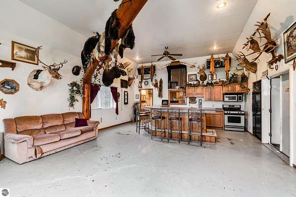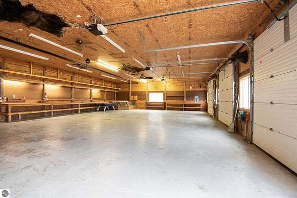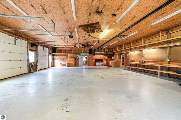 Looking for a place where the whole family can relax, play, and even get a little work (or fun projects) done? This unique property on all-sports South Dease Lake offers just that! Let's start with a beautiful vacant waterfront lot featuring 56 feet of sandy lake frontage--perfect for swimming, boating, fishing, or just soaking up the views. The lot already has well and septic installed, so you're one step closer to building your dream cottage or home. Right across the road, you'll find the ultimate bonus: a 1.25-acre lot with a massive 40x60 pole barn (that's 4,320 square feet!) built in 1998 and packed with features including: In-floor radiant heat, a full commercial kitchen with a 6-burner gas stove and walk-in cooler, mono rail system, plus multiple water and air hookups, 5 garage doors (3 in the front, 2 in the back), well, septic, and electric already in place and a 22x28 living space with another kitchen, bar, and bathroom. Whether you're dreaming of weekend lake adventures, a peaceful family escape, or a place to tinker and build, this property has it all. Come see it in person--you won't believe how much potential this spot has for fun, relaxation, and making memories!