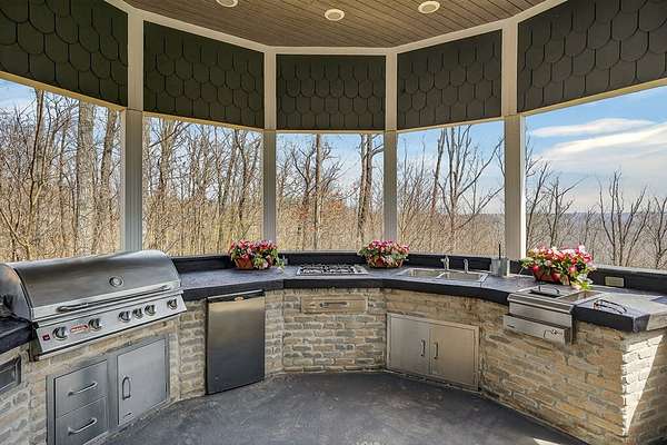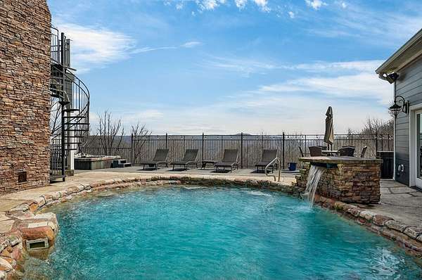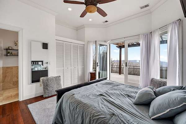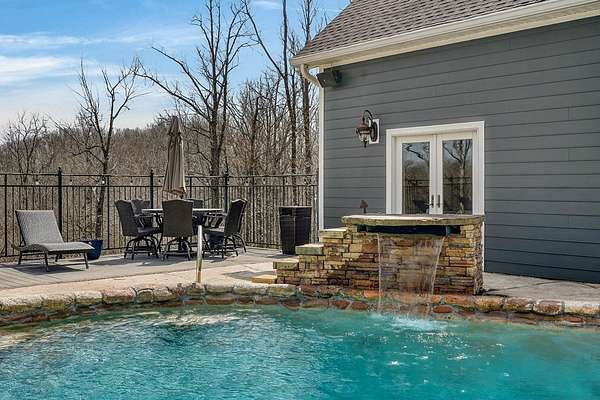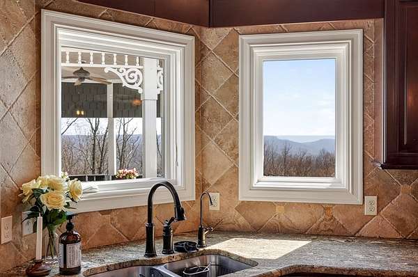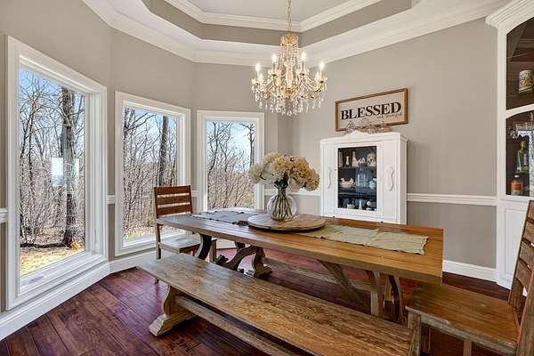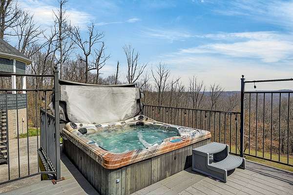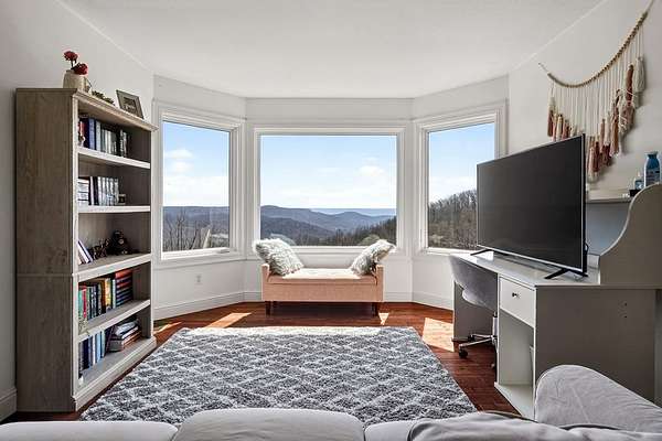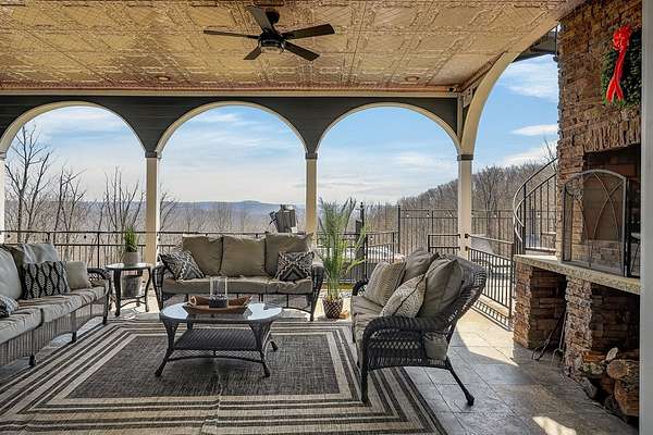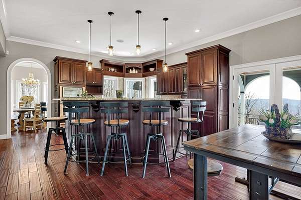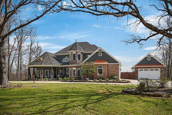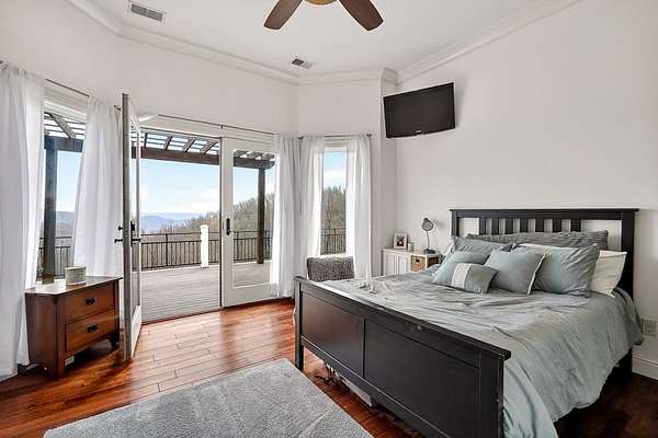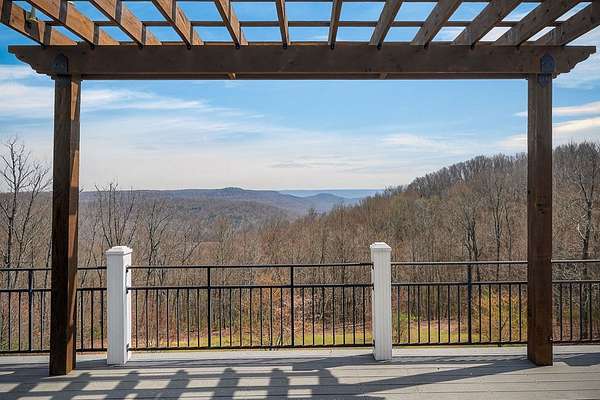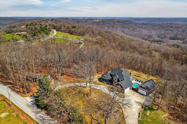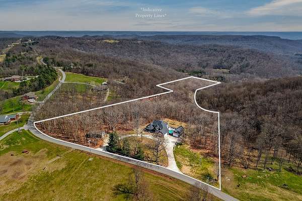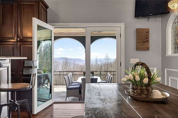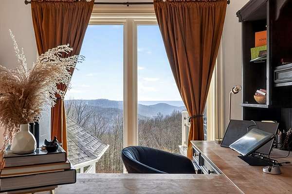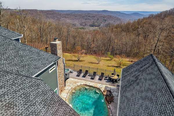 Commanding one of the highest vantage points in the region, this exceptional mountain estate spans 10.75 private acres with gorgeous views. The property offers over 4,200 square feet in the main residence, plus a 700 square foot guest house. Inside, refined finishes and thoughtful design bring warmth and character throughout the 4 bedroom, 4.5 bath home. The kitchen extends seamlessly to a resort-style outdoor setting featuring a full outdoor kitchen, pool, & hot tub. An expansive upper deck captures breathtaking sunrises. The guest house provides a private retreat with added flexibility. Two RV garages with 220V hookups, a U-shaped drive, & extensive storage add both function and convenience. Recent updates include new hardie board siding, new roofs on both homes (2025), updated paint and lighting, new HVAC units, & much more. The land invites exploration with trails, waterfalls, rock formations, & caves offering a rare opportunity to own not just a home, but an experience!