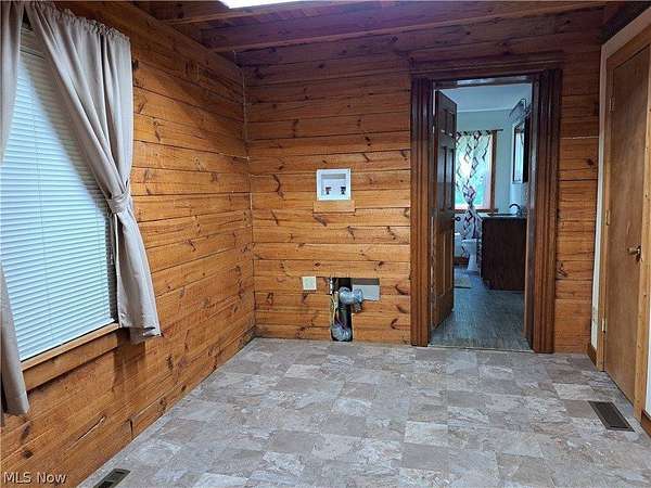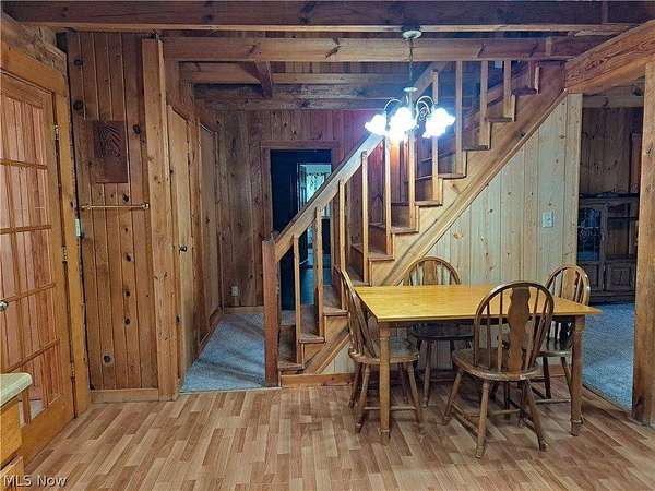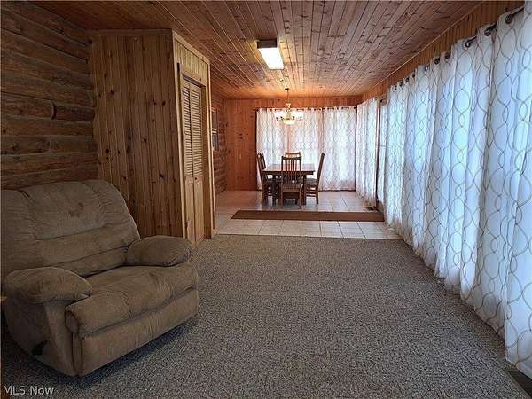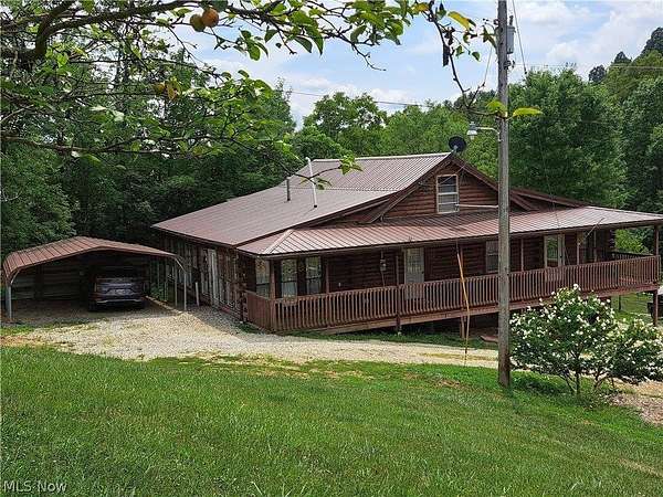 LOG CABIN w/FREE GAS & NO WATER OR SEWER BILL on 6+/- ACRES just 5 miles from SENECA LAKE! This log home has 5 bedrooms & 3 full baths, plenty of storage & room to roam. The great room lined w/indows & wood ceiling serves as a dining room & living area. Parlor doors take you into an eat-in kitchen with ample oak cabinets, pantry, broom closet & stainless steel appliances. A formal living room also offers a beamed ceiling & wall heater to keep you extra warm in the winter. Take in spectacular hillside views & sunsets from the sunroom w/wood ceiling & built-in bookcase. This first floor also includes a tiled full bath w/jetted tub, a bedroom/office w/wood walls & built-in shelving, a bedroom w/oak trim & ceiling fan, the master bedroom w/ oak trim, ceiling fan & scenic waterfall mural. The master bathroom has a jetted walk-in tub with nice tile work & exterior door ready for a new deck. The handy laundry room located between the kitchen & master bath completes this first floor. The upper loft/catwalk has a lovely window seat/reading nook w/a view. 2 more bedrooms w/cubby storage, natural woodwork & wall sconces are on this 2nd floor. The covered deck can be accessed from the sunroom, living room or kitchen. A full basement has the 3rd full bath & 2 tandem-style garages plus there's a 2-car carport & amazing 36'x64' (2304 sq. ft.) pole building w/concrete floor, 200 amp elec. service & garage door opener to park at least 6 more vehicles! There's also an 8'x10' storage building, a pond that's spring fed, garden area. Perfect for livestock or horses. Roof ages are 5 & 10 yrs. old. 2 furnaces/2 AC units, water softener, spring-fed cistern, septic, & FREE GAS until well is capped or no longer producing! SAVE ON UTILITIES with only an electric & cable/internet bill! CAUV & homestead currently on taxes. New survey split for 6 +/- acres to be completed prior to closing with new tax rate TBD. Minerals not owned. Additional adjoining land (+/-6 acres) available MLS#5170289.