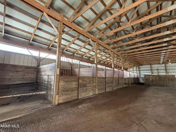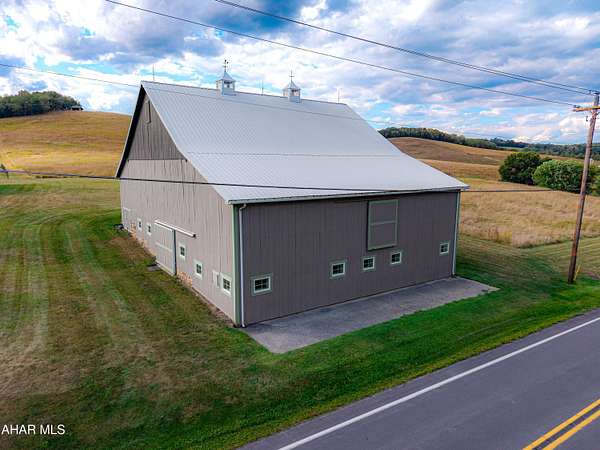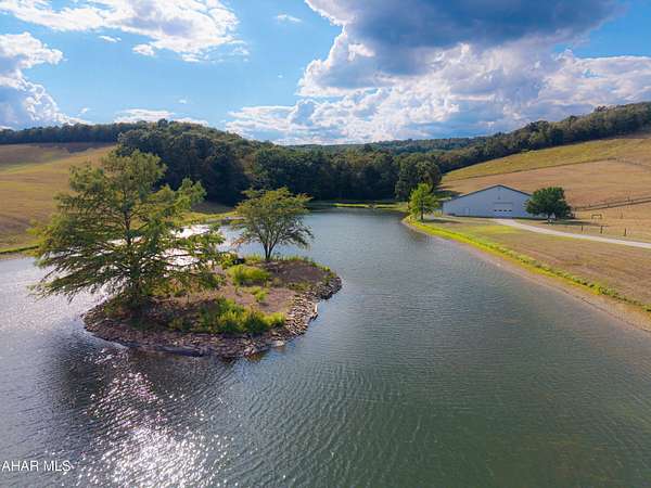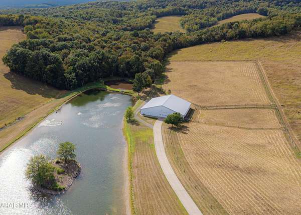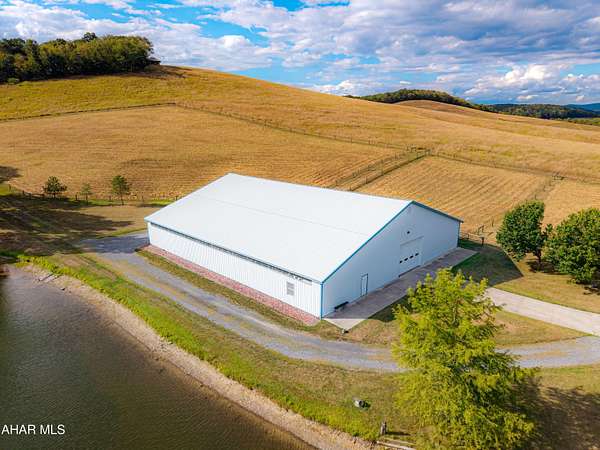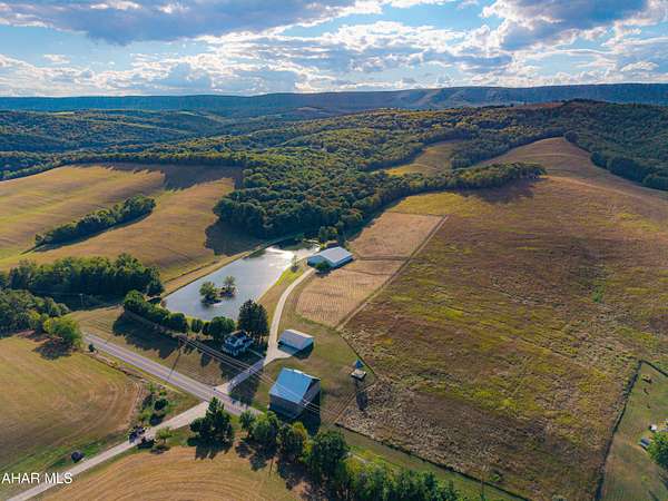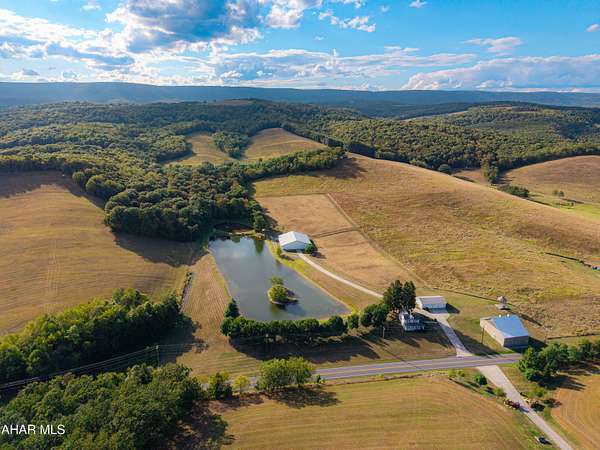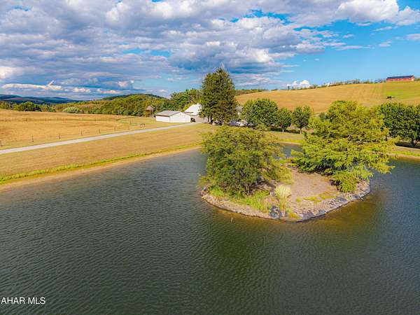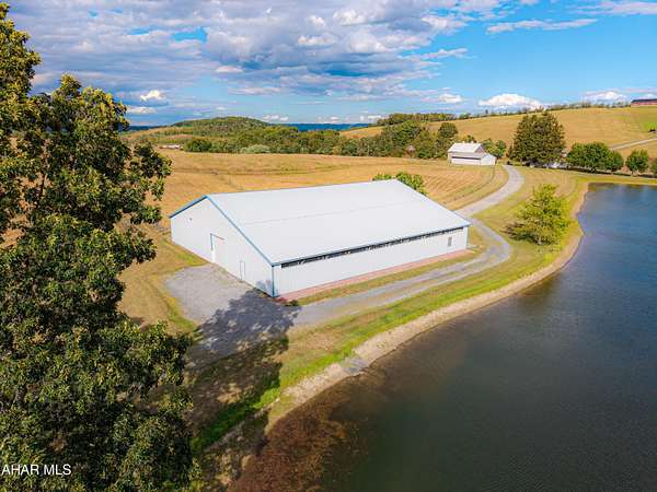 A Once-in-a-Lifetime Bedford County Estate Set against the rolling hills of historic Bedford County, this renovated farmhouse is gracefully sited on 150 +/- pristine acres, with panoramic views that capture the very best of Pennsylvania's countryside. Surrounded by open sky, woodlands, and rolling fields, the land itself is the true crown jewel of this estate. At the heart of the property lies a massive, private pond that feels more like a shimmering lake, a rare natural treasure where every step around the shoreline feels like entering another world. For those seeking even greater views, a gentle hike to the hilltop reveals a magnificent stone pavilion, crafted with stately pillars and a grand stone fireplace. From here, the eye travels 11-12 miles in every direction across pastures, treetops, and open sky-unmatched vantage point of Bedford County's landscape. The farmhouse itself rests closer to the road, providing convenient access, yet it is perfectly positioned to overlook the lake, creating a peaceful and picturesque backdrop from the home. Beyond, the property unfolds into fenced pastures with high-tensile fencing, tillable acres, and spaces designed for both agricultural and equestrian pursuits. A beautifully restored barn clad in durable Hardy board siding blends rustic charm with modern resilience, while the oversized three-car garage provides exceptional storage and functionality. A true hunter's and nature lover's paradise, the land is alive with wildlife. Deer, wild turkey, bear, and many other species roam freely, offering endless opportunities for outdoor recreation and a deep connection to nature. Despite its accessibility, the estate offers a remarkable sense of retreat. With close proximity to I-99, Route 30, and the Pennsylvania Turnpike, travel to Washington, D.C., Pittsburgh, Baltimore, and Philadelphia is surprisingly convenient. The property is also just minutes from one of Pennsylvania's finest resorts, Omni Bedford Springs, offering fine dining, golf, and wellness amenities. For the equestrian enthusiast, this property is unrivaled: a huge indoor riding arena with 15 horse stalls overlooks the lake, creating a breathtaking setting where horses and riders alike can thrive. This is not just a property, it is an experience. A place where natural beauty, abundant wildlife, and equestrian excellence converge into a lifestyle of unmatched peace, recreation, and possibility.