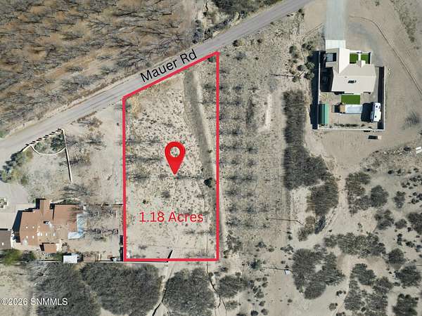 Head West on Calle Del Norte, turn right on S Fairacres Rd, turn left on Mesilla Hills Dr, turn right on Mauer. Third lot on the left.