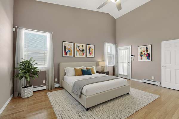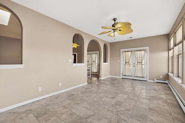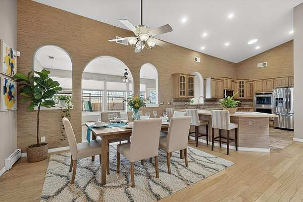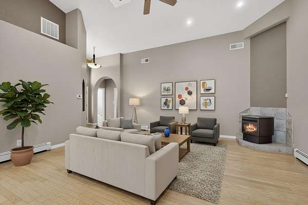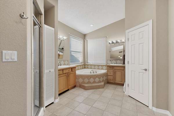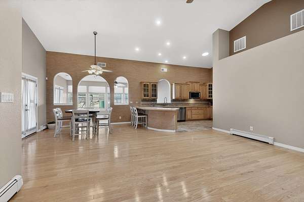 - Cathedral Ceilings, Ceiling Fans, Garden Tub Roman Tub, Great Room, High Ceilings, Home Office, Main Level Primary, Multiple Living Areas, Separate Shower, Skylights