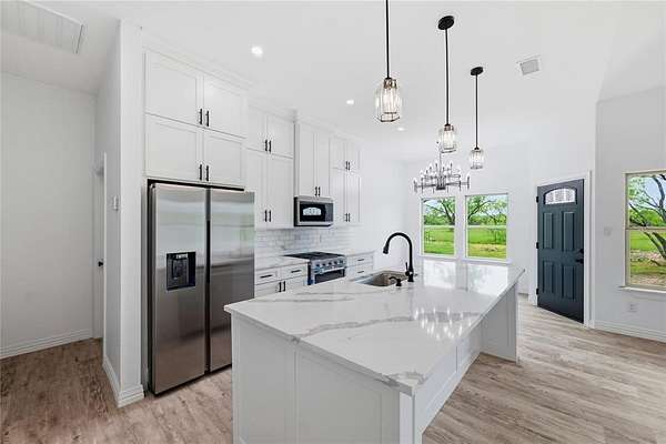 Step inside to discover a bright and inviting open floor plan, showcasing a modern kitchen equipped with modern appliances, ample cabinetry, and a island. The living area is perfect for entertaining, with large windows that flood the space with natural light.