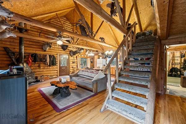 Come explore this pristine 30 acres located at the base of the Cottonwood Creek drainage on the West side of the Crazy Mountain Range which is part of the Custer Gallatin National Forest. Just 45 minutes from Livingston and an hour away from Bozeman, this could be your weekend getaway and basecamp for many hunting, fishing and other outdoor adventures! The parcel of land is incredibly secluded and hosts a variety of wildlife including deer, elk, moose and bear. Just up the Forest Service Road are two trailheads offering access to the vast alpine backcountry. Within the property and perched on top of a forested knoll sits a 3bd, 1 bath rustic log cabin, plumbed in with well water and sanitation. Additionally, there is a 2-car garage with a 2bd loft and gaming room. To the North of the property is a 25ft x 60 ft Quansah hut, perfect for storing any side-by-side, snowmobiles, toys or tractors. Parcels of this size do not come on the market very often so do not miss out on a rare opportunity to own your legacy property to enjoy for generations to come.