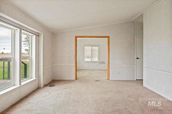 PROPERTY IS VACANT AND READY TO SHOW- Enjoy country living on 12.2 irrigated acres in New Plymouth. This well-maintained 3-bedroom, 2-bath home offers approximately 1,176 sq ft with a comfortable layout, separate dining area, and functional kitchen. The home is on a permanent foundation and financeable, providing long-term stability and lending flexibility. A deck off the living area offers beautiful farmland and mountain views. The property includes a detached 4-car garage, fenced pasture and corral, and plenty of space for animals, equipment, or small-scale farming. Irrigation is in place, mature trees provide shade, and convenient access to Highway 30 and I-84 allows for an easy commute while maintaining a peaceful rural setting.