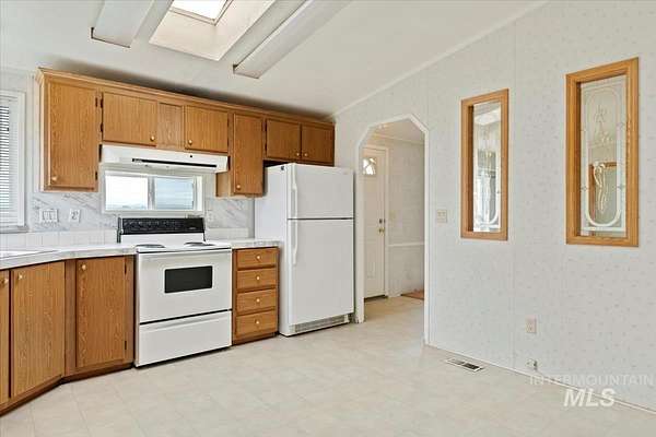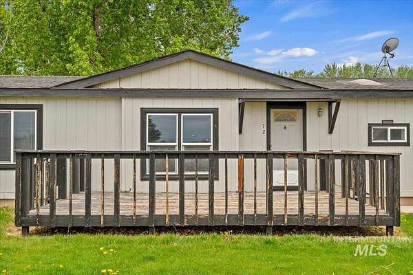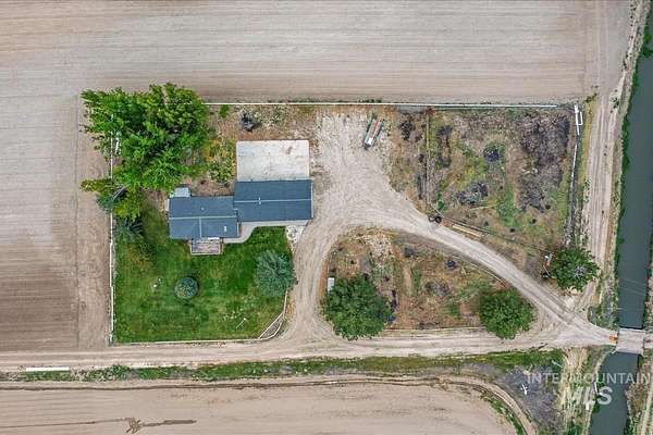 NEW BRIDGE INSTALLED, EASEMENT IN PLACE- Enjoy country living on 12.2 irrigated acres in New Plymouth. This well-maintained 3-bedroom, 2-bath home offers approximately 1,176 sq ft with a comfortable layout, separate dining area, and functional kitchen. The home is on a permanent foundation and financeable, providing long-term stability and lending flexibility. A deck off the living area offers beautiful farmland and mountain views. The property includes a detached 4-car garage, fenced pasture and corral, and plenty of space for animals, equipment, or small-scale farming. Irrigation is in place, mature trees provide shade, and convenient access to Highway 30 and I-84 allows for an easy commute while maintaining a peaceful rural setting.
