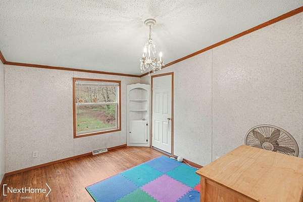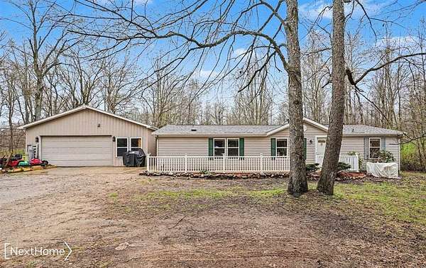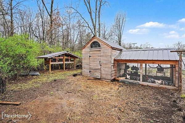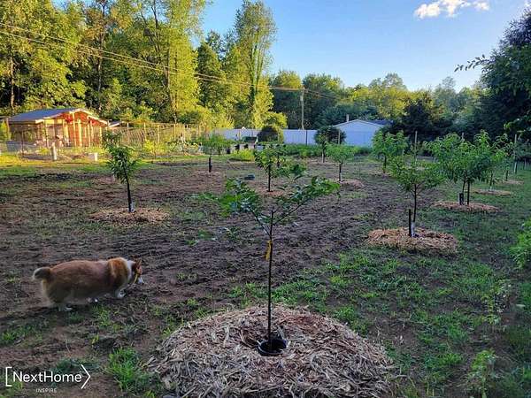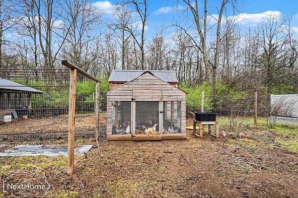 Live the small-farm lifestyle you've been looking for on this scenic 5.5-acre property complete with a flowing creek and a thoughtfully set-up mini homestead. Designed for both function and enjoyment, the property features a dedicated pasture area, rabbit hutch, and a large chicken coop ready for your animals. Grow and harvest your own food with an established fruit orchard offering cherry, apple, pear, peach, nectarine, blueberries, strawberries, raspberries, elderberries, blackberries, and grapevines, along with raised garden beds for seasonal planting. A tranquil water garden/fish pond adds to the peaceful setting. The mostly wooded acreage provides privacy and natural beauty, with a path leading to the creek for exploring or unwinding outdoors. A private driveway sets the home well back off a quiet dead-end road, creating a secluded feel, while the impressive 30x40 attached pole barn offers excellent space for storage, hobbies, or equipment. A rare opportunity to enjoy space, privacy, and a more self-sufficient lifestyle. All three bedrooms have walk-in closets. Any accepted offer is subject to the sellers securing suitable housing.