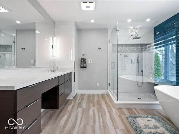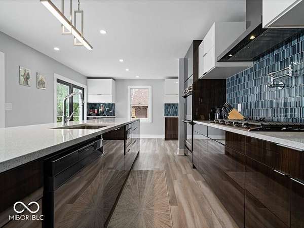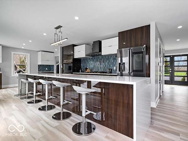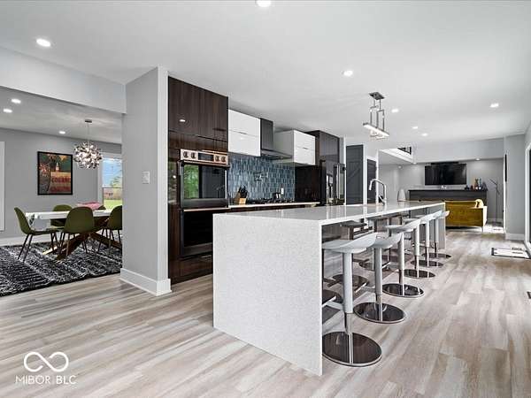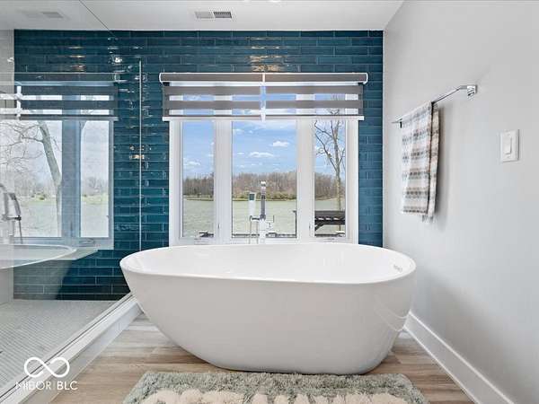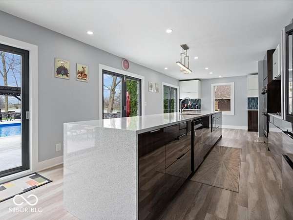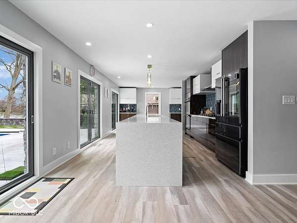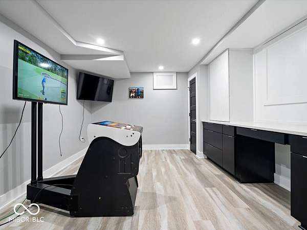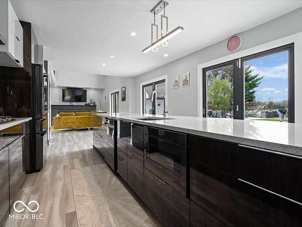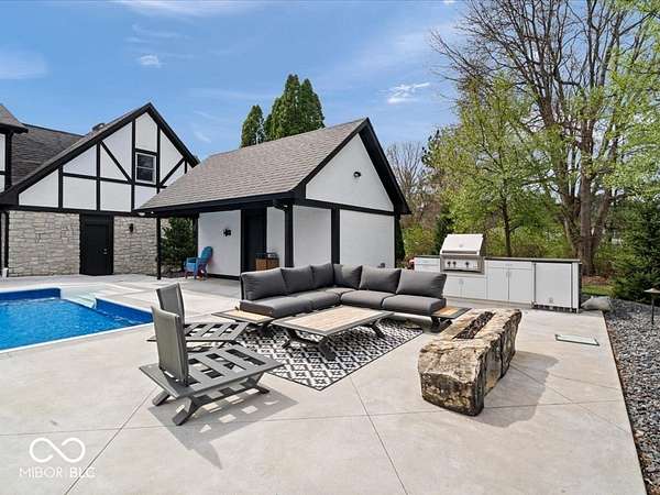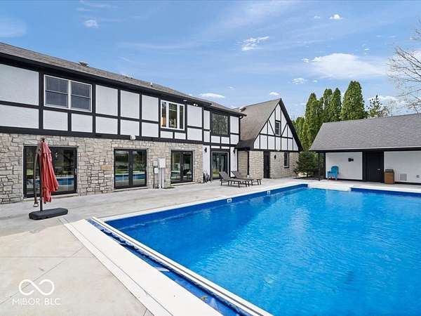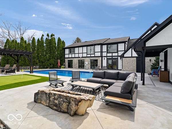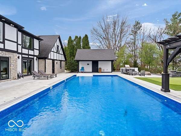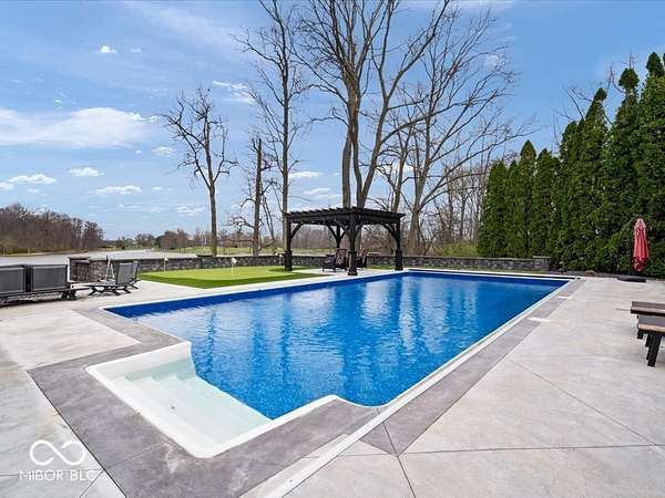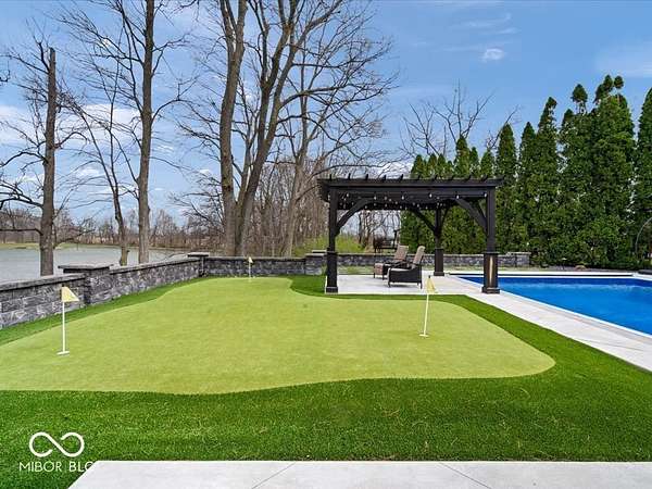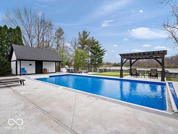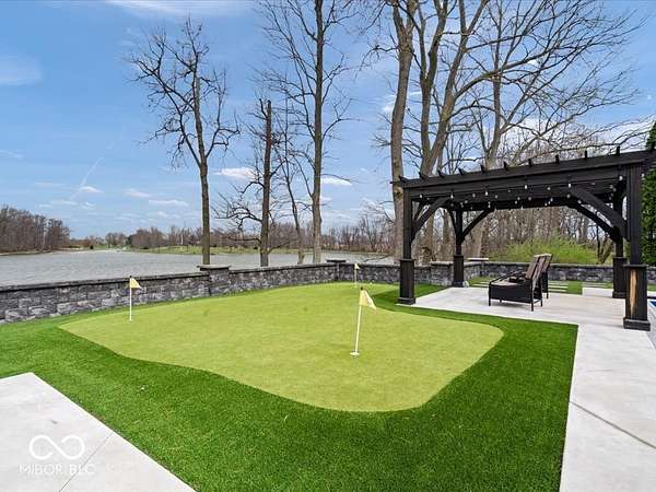 Looking for a home with a POOL, GOLF SIMULATOR, and LAKE views in Greenfield, Indiana? This extensively remodeled property on Sugar Hills Lake offers a rare combination of modern updates and outdoor living features just outside Indianapolis. The main level was completely rebuilt down to the studs, creating an open layout with modern finishes. The kitchen overlooks the pool with bifold sliding doors, custom cabinetry, large center island with waterfall quartz countertops and high end Samsung appliances. The primary suite includes TWO spa-like full bathrooms and two walk-in closets, providing a level of space and functionality not commonly found. The finished lower level adds additional living space with a full bathroom, while major mechanical improvements-including HVAC relocation and a sump system with battery backup-support long-term reliability. Outdoor features are designed for everyday use and entertaining. The property includes a 20x40 SALT WATER INGROUND POOL, outdoor KITCHEN with gas and refrigeration, , PERGOLA AND POOL HOUSE, GAS FIREPIT, and a dedicated PUTTING GREEN. The FIVE CAR garage offers space for vehicles, walk up attic storage, and a golf simulator setup for year-round use. Located along Sugar Hills Lake, this property offers water views and a private setting while remaining convenient to Greenfield and the greater Indianapolis area. With over $500,000 invested in renovations and improvements, this home stands out for buyers searching for a remodeled home with a pool, golf features, and lake setting in Central Indiana.
