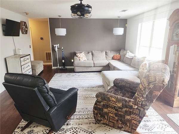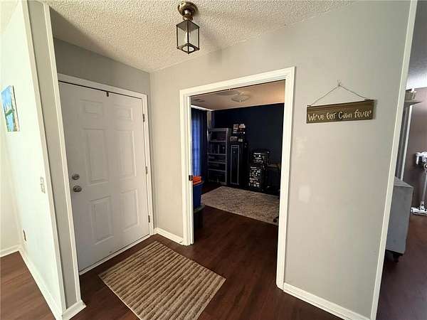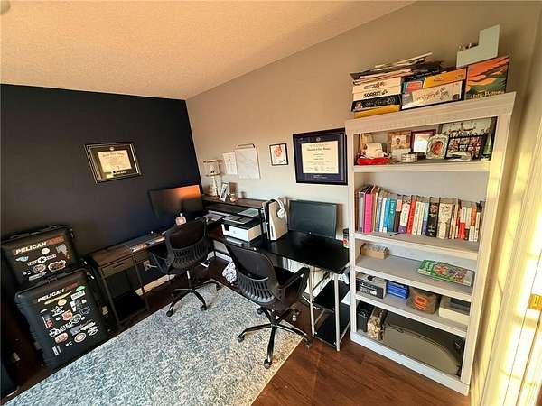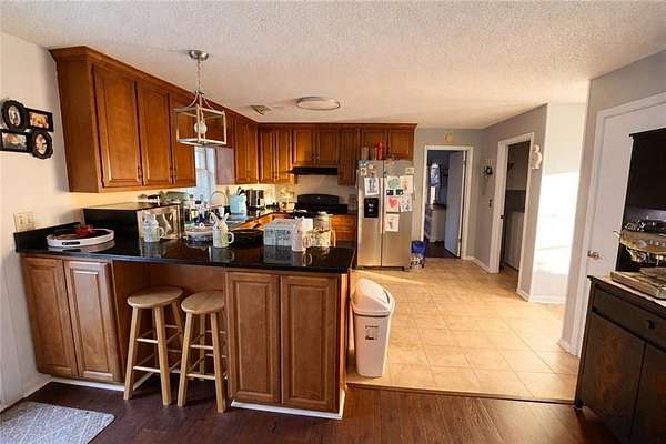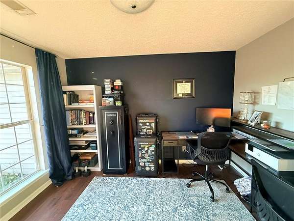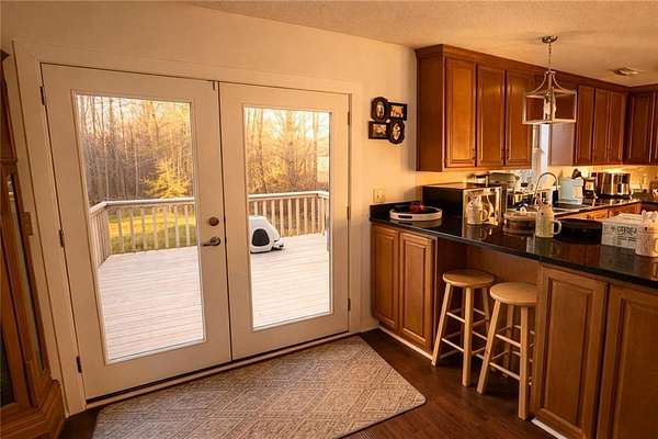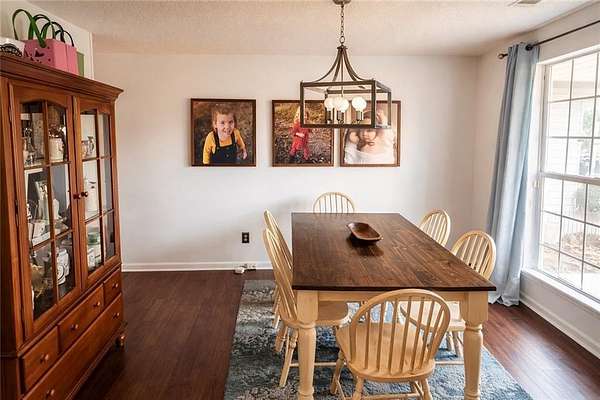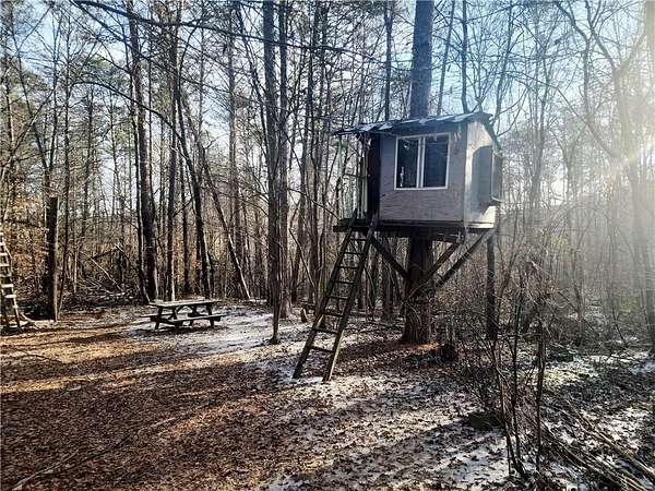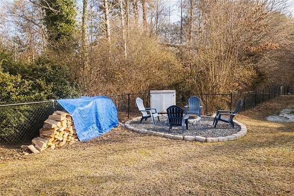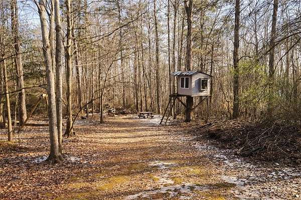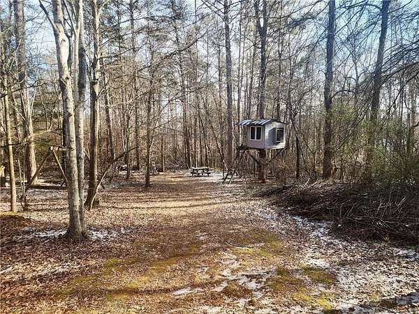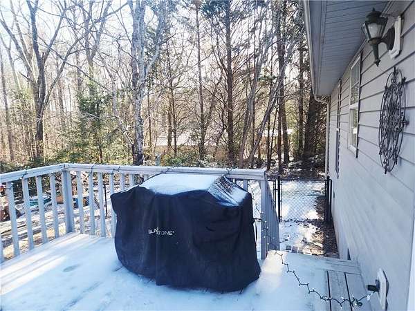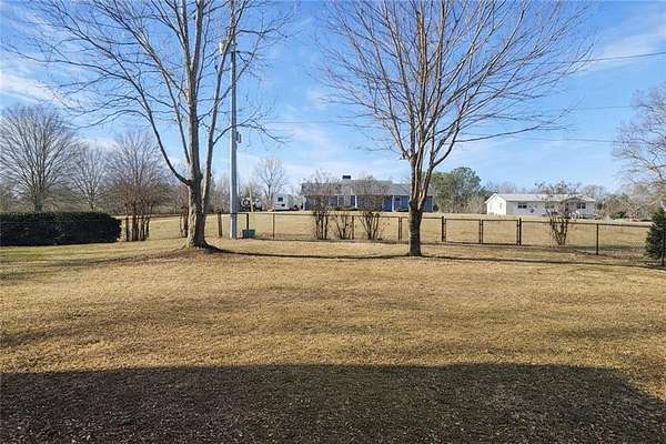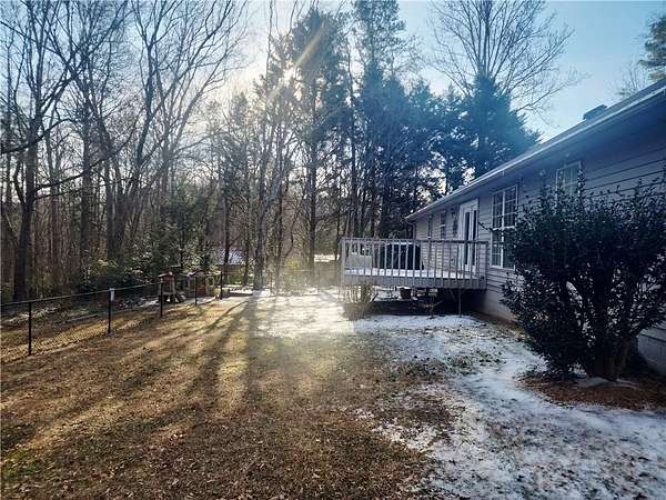 Ranch-style home offering a desirable location between Gainesville and Dahlonega with convenient access to shopping, dining, and entertainment. Situated on 2.2 acres, the property features a fully fenced front and backyard, along with additional wooded acreage behind the home that provides added privacy and usable outdoor space. The functional floor plan opens into a living room with ample natural light and access to the back deck overlooking the spacious backyard. The kitchen includes generous cabinetry, granite countertops, and an island with bar seating, providing a solid foundation for everyday living and entertaining. A formal dining area is located just off the kitchen. A front flex room with a large window can be used as a home office, study, or additional living space. The primary bedroom includes a walk-in closet and a private en-suite bathroom with double vanity, garden tub, and separate shower. The home offers a split bedroom plan with two additional bedrooms and a shared full bathroom. Outside, the level lot allows for a variety of outdoor uses including gardening, recreation, or relaxing. The back porch is ideal for grilling or enjoying the peaceful setting. An outbuilding offers additional storage. This property presents a great opportunity for buyers looking for one-level living with acreage, privacy, and the ability to make updates over time.
