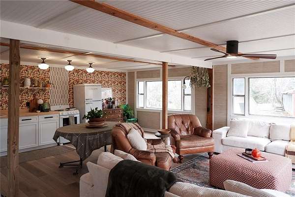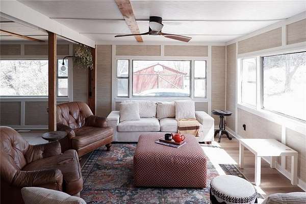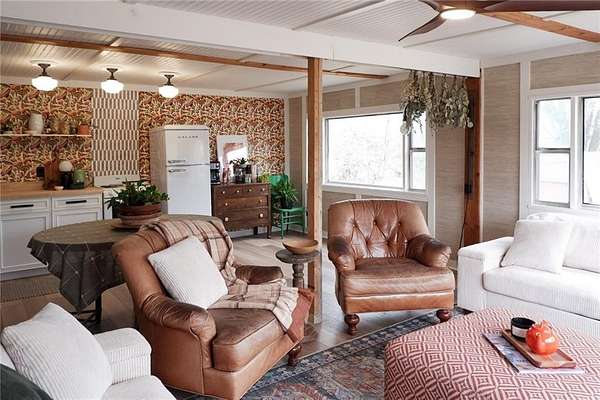 Welcome to your own private retreat, a charming farmhouse set on 10 scenic acres. This property offers the perfect blend of open land, natural beauty, and functional space, featuring a peaceful creek winding through the acreage, 2 ponds, expansive fields ideal for gardening, livestock, or recreation, and a dedicated garden area ready for planting. The property includes multiple barns and outbuildings, providing ample storage and flexibility, along with a fully equipped woodworking shop for projects and hobbies. A traditional root cellar offers excellent storage for homegrown goods, and the outdoor fire pit area creates the perfect setting for entertaining, dining, and enjoying quiet evenings under the stars. This is a rare opportunity to experience country living with space to grow, create, and unwind. About the Home Inside, the home is warm and inviting, with neutral tones and natural light throughout. Thoughtfully designed for both comfort and functionality, the layout offers a peaceful, quiet atmosphere while still feeling open and connected. The open-concept living space is ideal for gathering, whether it's morning coffee, family dinners, or relaxing evenings overlooking the surrounding landscape. Large windows bring the outdoors in, creating a bright and welcoming environment. A standout feature of the home is the "social study," a cozy, versatile space designed for conversation, relaxation, or quiet moments. With comfortable seating and a flexible layout, it's perfect for hosting, unwinding, or simply enjoying the slower pace of country life. This farmhouse offers more than just a place to live, it's a lifestyle centered around space, connection, and simplicity.