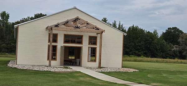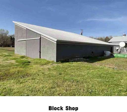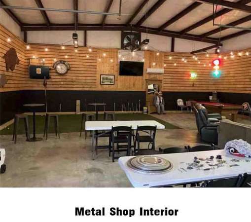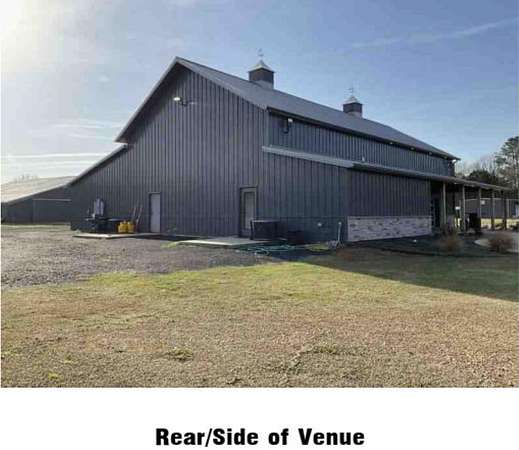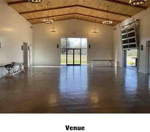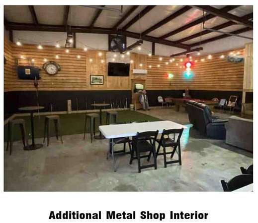 - 270 SF cabin for overnight stays or private prep o 2,400 SF metal party barn featuring a bar, small kitchen, golf simulator, and televisions--ideal for private events, watch parties, or corporate retreats o 2,400 SF block shop/storage building o 812 SF storage building with overhead door o 280 SF existing pavilion for casual gatherings or vendor setups