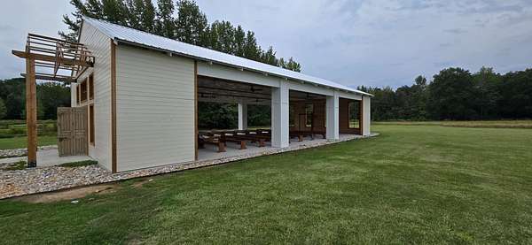 Anchoring the estate is a 4,808 SF two-level venue barn, complete with a groom's quarter, bride's quarter, and a fully equipped industrial kitchen. Just outside of the barn is a spacious open-air pavilion, perfect for ceremonies, receptions, or seasonal events under the Arkansas sky.