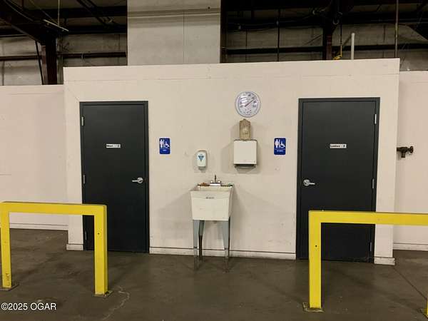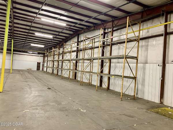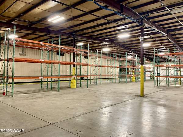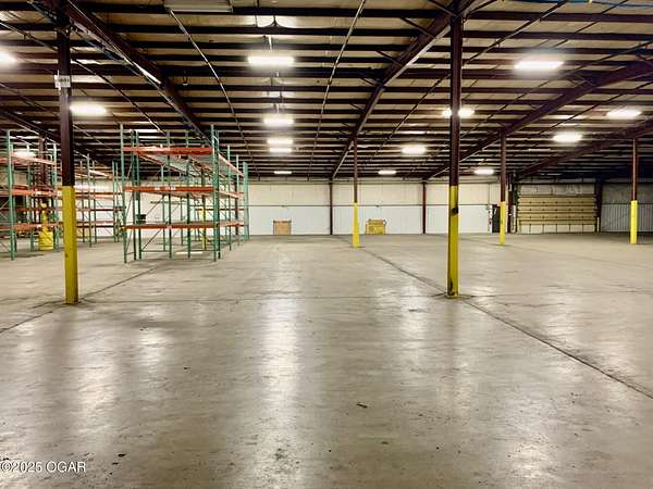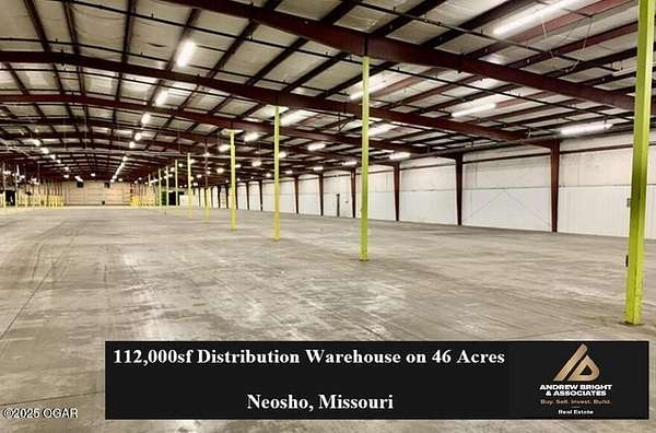 This distribution warehouse contains 112,000 square feet of rentable area situated on a 46.00 acre site. 12 elevated adjustable front dock doors, 2 drive-in doors, and a clear ceiling height of 16-21 feet. The property features office space with breakroom and a total of 7 restrooms. Multiple racks in place for inventory. See flyer in Documents.