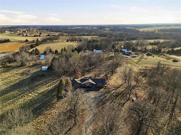 Highly sought-after close-in acreage just minutes from Smithville Lake, Zona Rosa, and KCI. This true ranch sits on a picturesque 14.5 acres with two ponds. Large, open living and family room with solid bones throughout. Built in 1987, the home needs cosmetic updates, and the land would benefit from some TLC. An excellent opportunity for a buyer looking to create their own dream property and landscape. Lot lines depicted are approximate and not guaranteed. Buyer to rely on their own inspections, surveys, and due diligence to confirm property boundaries.