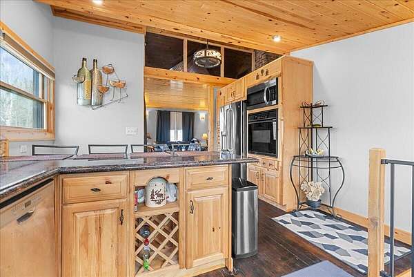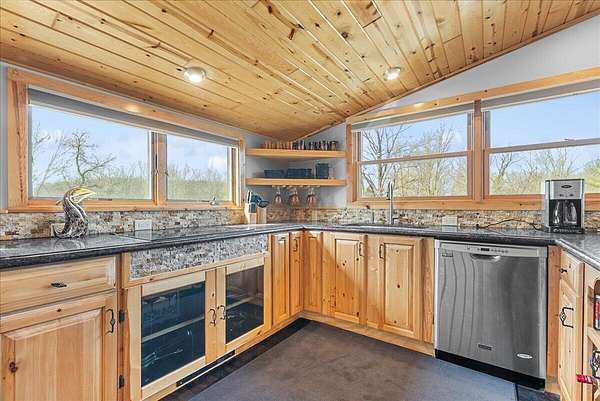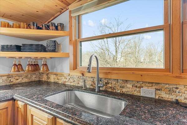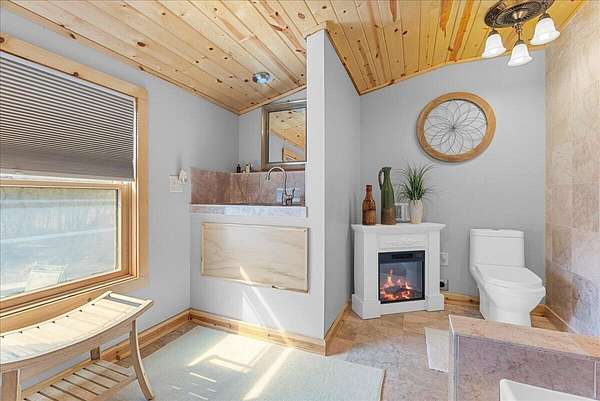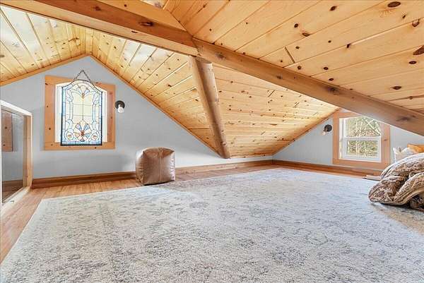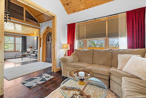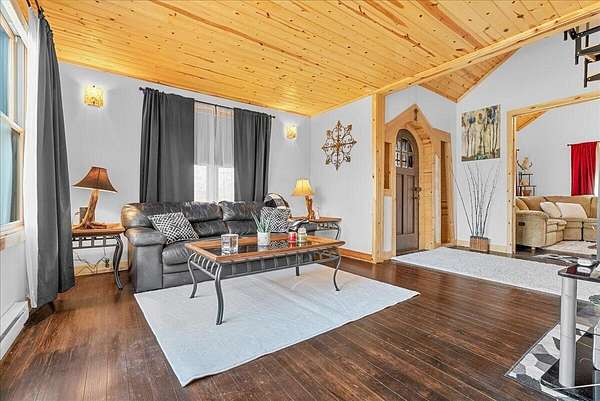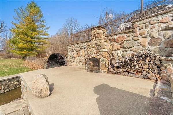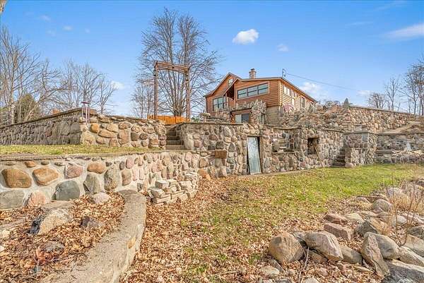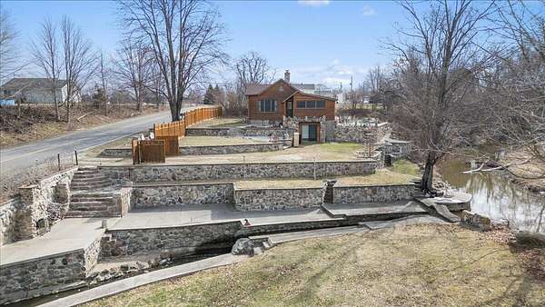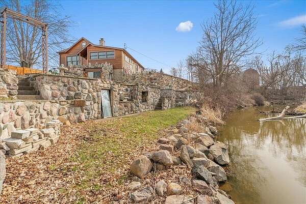 Welcome to Rustic Waters at 5726 Musgrove in Sunfield, a one-of-a-kind cedar log retreat offering unmatched natural beauty and modern rustic charm. Set on nearly 2 private, fenced acres with a gated driveway, this incredible property features two stunning waterfalls, including one along Ionia County's only trout stream. With the potential for hydro power (approx. 2kW), this is a rare opportunity to own a truly unique and self-sustaining landscape. The home has been completely remodeled from top to bottom, featuring new Andersen windows, spray foam insulation, all new electrical and plumbing, a new septic system, and a stainless steel water heater. Inside, you'll find 3 bedrooms and 2 full bathrooms with marble floors and surrounds, including a primary suite with a jetted tub. Vaulted wood ceilings, a spiral staircase leading to a loft overlooking the main living area, and a warm blend of hardwood and LVP flooring create a stunning interior. The custom kitchen features granite countertops, hickory cabinetry, and stainless steel appliances, opening to inviting living spaces that include a family room, office, walk-in closet, and main-floor laundry hookups. The finished walkout lower level adds even more functional living space. Step outside and experience the true magic of this property, a large concrete patio overlooking the creek, terraced natural stone walls, and a second patio with an outdoor fireplace overlooking the waterfall. A covered front porch offers another peaceful place to take in the surroundings. Additional features include a Culligan water softener, electric heat, ample storage space, and the option to purchase the home fully furnished. This is more than a home, it's a private retreat, a nature lover's dream, and a truly rare find unlike anything else on the market.