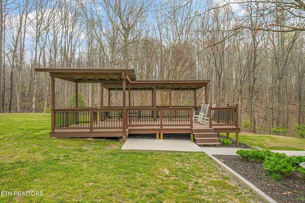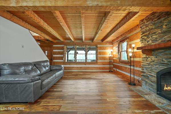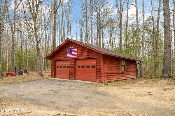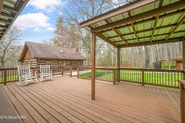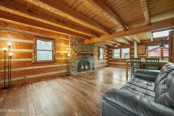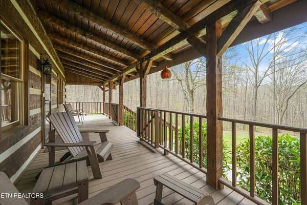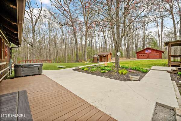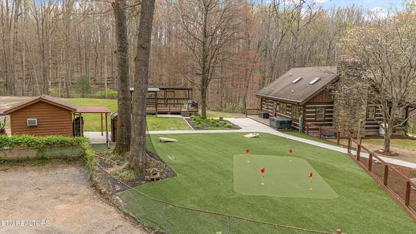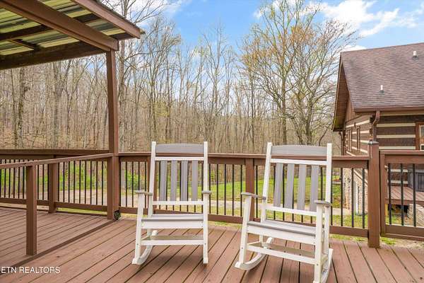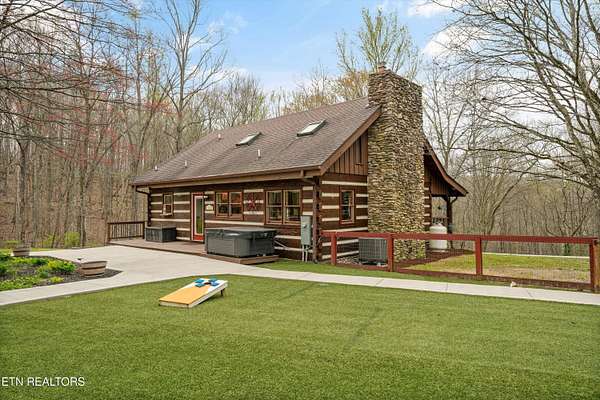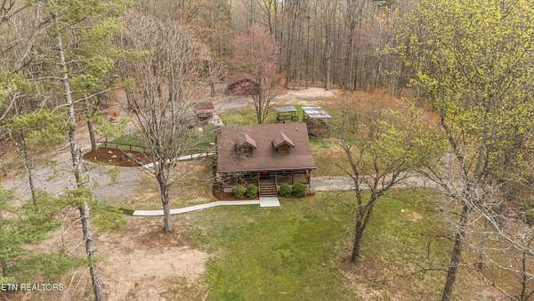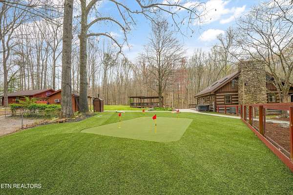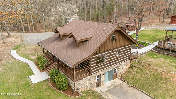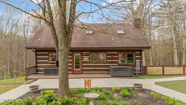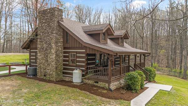Escape to your own private retreat with this stunning log cabin estate set on 24.15 picturesque acres of wooded countryside with beautiful mountain views. Offering 2,520 square feet, this thoughtfully designed home features 3 bedrooms and 3 full baths, blending rustic charm with modern comfort. Inside, you'll find hardwood floors, a welcoming wood-burning fireplace, and an open-concept kitchen complete with granite countertops and a large island perfect for gathering and entertaining. The finished basement provides additional living or recreation space, while the detached two-car garage offers convenience and storage. Enjoy peaceful mornings and relaxing evenings from the expansive covered front porch, surrounded by nature and abundant wildlife. Outdoor enthusiasts will appreciate the property's exceptional amenities, including over one mile of private trails ideal for mountain biking or four-wheeling, a remarkable 3,000-square-foot golf practice turf, and a hot tub perfectly positioned to take in the serene surroundings. With unmatched privacy, scenic beauty, and endless opportunities for recreation, this one-of-a-kind property delivers the ultimate East Tennessee mountain lifestyle. Located only 30 minutes from Downtown and West Knoxville. Square footage is approximate. Buyer to verify.