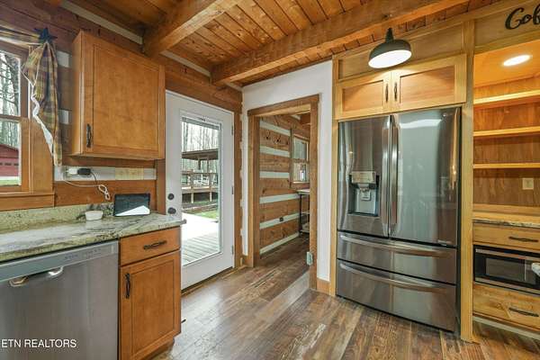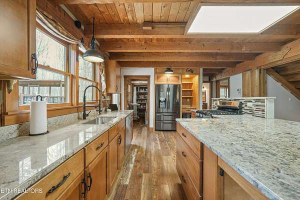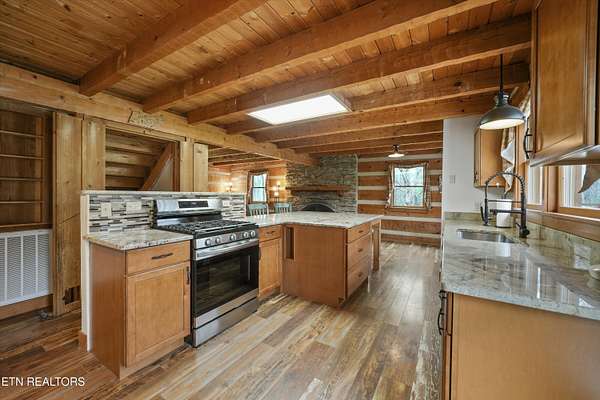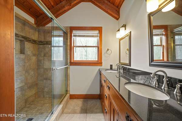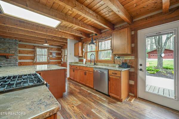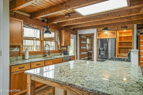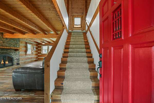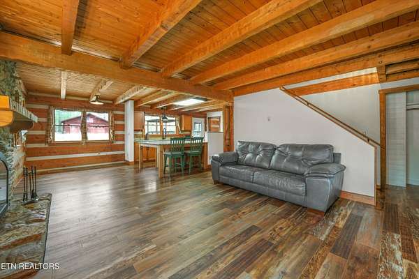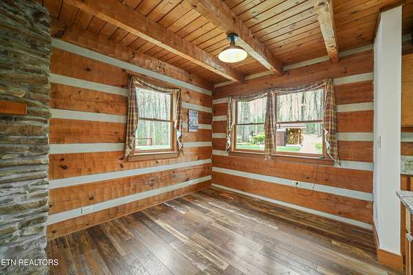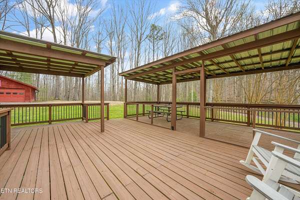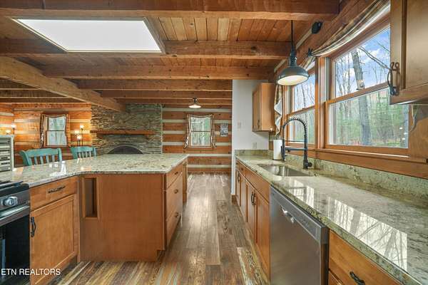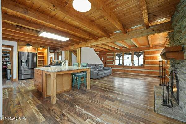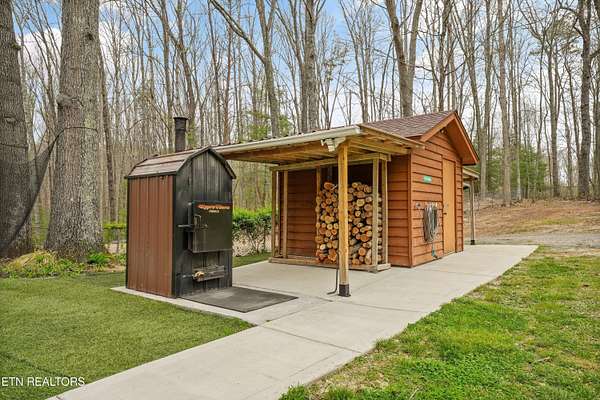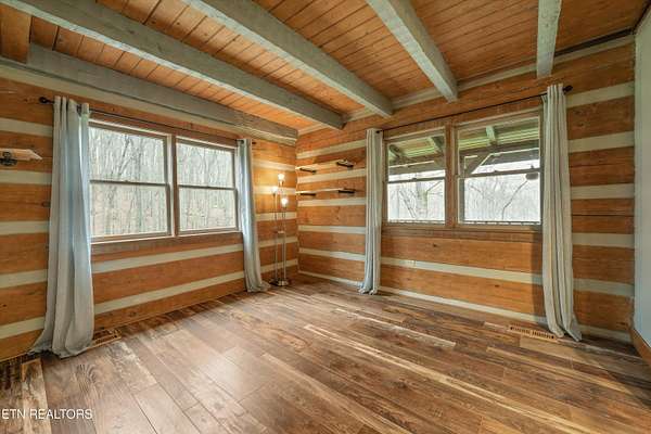 Escape to your own private retreat with this stunning log cabin estate set on 24.15 picturesque acres of wooded countryside with beautiful mountain views. Offering 2,520 square feet, this thoughtfully designed home features 3 bedrooms and 3 full baths, blending rustic charm with modern comfort. Inside, you'll find hardwood floors, a welcoming wood-burning fireplace, and an open-concept kitchen complete with granite countertops and a large island perfect for gathering and entertaining. The finished basement provides additional living or recreation space, while the detached two-car garage offers convenience and storage. Enjoy peaceful mornings and relaxing evenings from the expansive covered front porch, surrounded by nature and abundant wildlife. Outdoor enthusiasts will appreciate the property's exceptional amenities, including over one mile of private trails ideal for mountain biking or four-wheeling, a remarkable 3,000-square-foot golf practice turf, and a hot tub perfectly positioned to take in the serene surroundings. With unmatched privacy, scenic beauty, and endless opportunities for recreation, this one-of-a-kind property delivers the ultimate East Tennessee mountain lifestyle. Located only 30 minutes from Downtown and West Knoxville. Square footage is approximate. Buyer to verify.