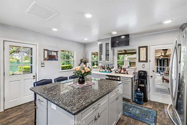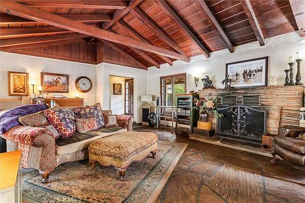 Magnificent One-of-a-kind property in the heart of Yorba Linda ~ First time on the market in over 50 years ~ Charming 5 bedroom adobe pool home situated on 3.7 acres (approx.) of citrus trees and secluded grounds ~ Superb craftsmanship in this home featuring stone floors, wood beamed ceilings, wood framed French doors and windows and vintage stone fireplace ~ The original home was built in 1946 (per title) and has been remodeled and additional living space was added in 2001 (approx.). Remodeled kitchen features a spacious island, greenhouse window, apron sink, 5 burner gas stove with range hood, self-closing custom cabinetry, granite and quartz counters and a wine frig. ~ Distinctive living room and dining room with unique architecture and views of the surrounding land ~ Primary bedroom with stone fireplace, beamed ceilings, wood flooring and casual seating area ~ Spacious remodeled primary bathroom with an oversized shower and huge walk in closet ~ Additional 2 bedrooms are ample in size and share a hall bathroom ~ Upstairs features a bonus room, 2 additional bedrooms and a bathroom ~ Tranquil pool and spa surrounded by the majestic surrounding grounds ~ 2 car detached garage with 1/2 bath ~ Covered front and rear patios to relax and enjoy the tranquility and serenity of the vast wide open spaces and stately trees that brings country living to you ! This is a spectacular property and there is nothing else like it in Yorba Linda.