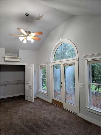 Subzero fridge and nice cabinets open on a breakfast room with windows on 3 sides. Vaulted ceilings in master and foyer. Large deck off the back of the master bedroom.