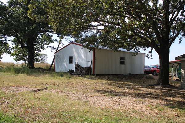 Located on a dead-end road in Kansas, Okla is a very private 3 bed/2 bath home on 38 +/- acres. The farm is comprised of approx. 28 acres of mature timber and 10 acres of pasture. The topography within the timber is primarily level. Fantastic fall and spring hunting for whitetail deer and turkey are literally in your backyard. The 30x30 insulated shop contains a concrete floor, electric and 220 electric service, walk-through door and overhead door with automatic opener. A new well system and pipes were installed in 2023, HVAC system was replaced about 12 years ago and the home also has a wood burning stove. A tankless water heater was replaced in 2024 and a new roof was put on in 2026. There is a 56x56 fenced garden area with stainless steel raised beds, and a chicken coop with a run.