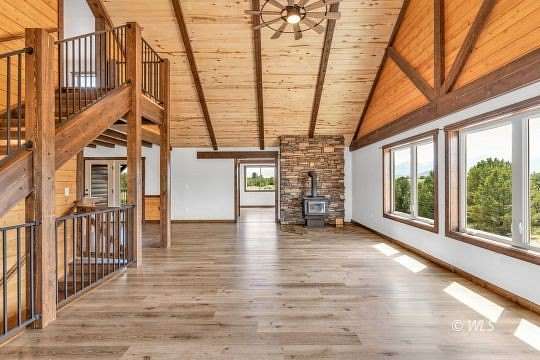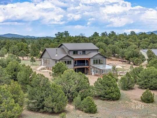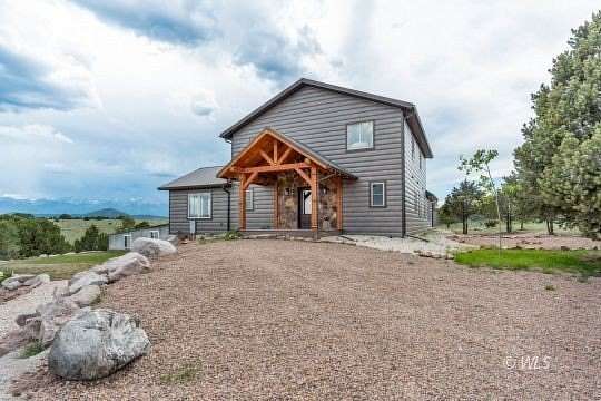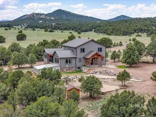 Nestled between the Wet Mountains and the Sangre de Cristos, this beautifully crafted Amish home offers comfort, space, and unbeatable views! With four bedrooms and 3.5 baths, the home features wood floors, a study, and a main-level primary suite with an ensuite bath. Enjoy entertaining on the large, covered upper deck or the lower walk-out deck-perfect for gatherings with stunning mountain backdrops. The spacious kitchen opens to a generous mudroom and laundry area with an oversized pantry. A full, unfinished basement with a separate kitchen adds flexibility for guests or events. Stay cozy year-round with two woodburning stoves and a vented propane wall heater. The property includes a 420 sq. ft. attached greenhouse, a 4,280 sq. ft. heated pole barn with a concrete floor and hay sheds, plus five additional outbuildings. Set on 35.2 fenced and treed acres, this home blends rustic charm with modern amenities-ready for your next chapter! Ideal for multi-generational living, hobby farming, or entertaining, this property offers space, comfort, and self-sufficiency in a breathtaking mountain setting.