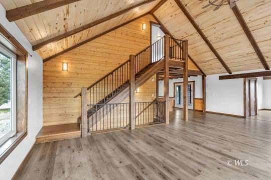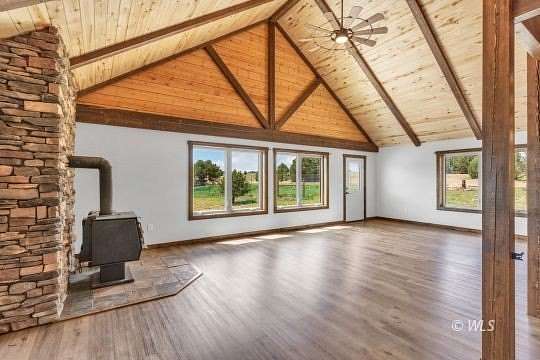 - Ceiling Fans, Cement Flooring, Vaulted Ceilings, Walk-In Closets, Wood (hardwood) Flooring, Wood Burning Stove