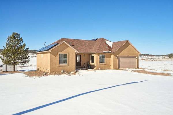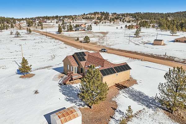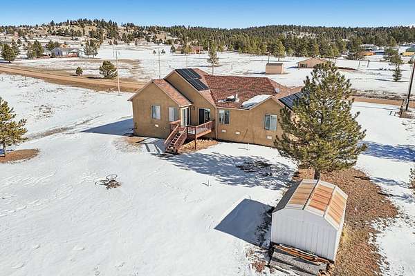 Nestled in sought after Colorado Mountain Estates, this turnkey mountain ranch delivers the space, privacy, and sweeping views you'll love. Set on 2 usable acres, the property feels like a private retreat while remaining comfortably accessible year-round. Inside, a bright open layout is designed for effortless living and entertaining. The central great room flows seamlessly into the dining area and a spacious chef's kitchen featuring solid granite countertops, stainless steel appliances, generous cabinetry, a large island with breakfast bar seating, and pantry storage. Vaulted ceilings enhance the sense of light and openness, while rich wood flooring adds warmth and natural character throughout the main living areas. Offering 3 bedrooms and 2 baths with an ideal separation between the private primary suite and secondary bedrooms. The primary suite offers a walk-in closet and a private 4-piece bath, creating a peaceful retreat. A dedicated laundry room includes a utility sink, cabinetry, and an adjoining storage room for added functionality. Practical upgrades enhance comfort and long-term value, including owned solar paired with a Tesla Powerwall battery backup for energy efficiency and reliability, plus well and septic for added independence. The low maintenance stucco exterior is complemented by an attached 2 car garage featuring 220V power, an epoxy flake floor, and partial drywall while the separate outbuilding provides added flexibility for equipment, hobbies, or workspace. Enjoy outdoor living with wide open acreage and expansive big sky views in every direction, ideal for decks, fire pit gatherings, or space for pets, all surrounded by the quiet beauty of the Colorado landscape. Community amenities include a neighborhood fire department supporting favorable insurance rates, HOA ponds with seasonal gatherings and potlucks, and close proximity to Florissant Fossil Beds National Monument for hiking and outdoor adventure, all while remaining outside city limits for lower taxes. FHA ASSUMABLE @ 3.25%. A RARE ADVANTAGE. Offered at $460,000 with an assumable FHA loan of approximately $353,000 at just 3.25%. Buyers bring the remaining equity through cash or secondary financing, often achieving a blended rate well below today's market rates. If you've been waiting for a clean, move-in ready mountain home on acreage, not a project, this one belongs at the top of your list. Experience Colorado Mountain Estates living at its best and schedule your showing today.