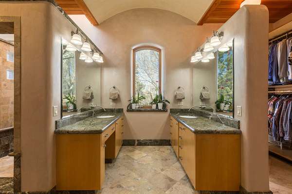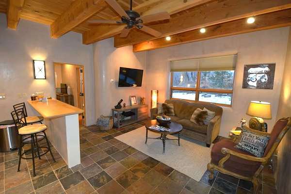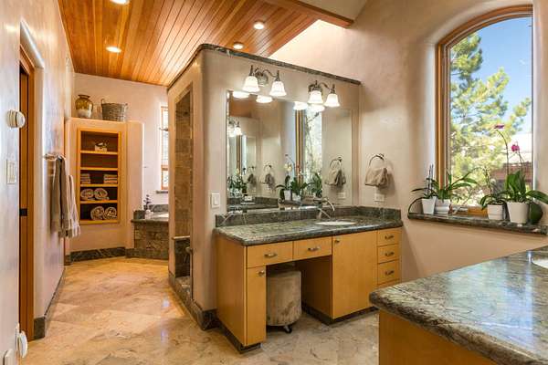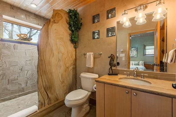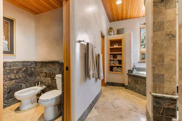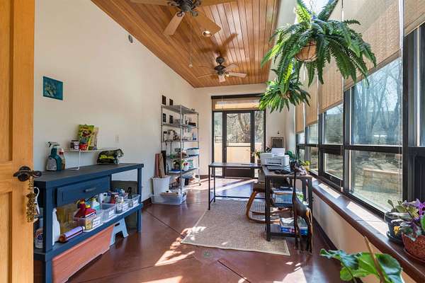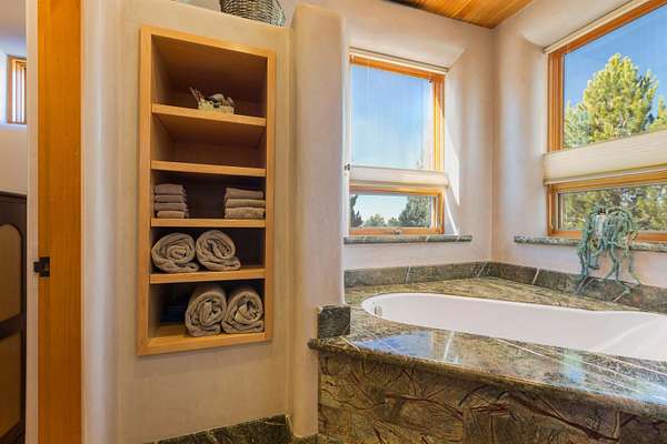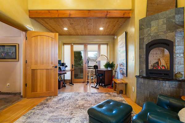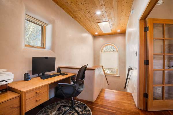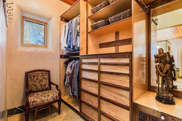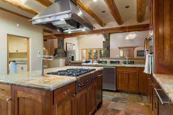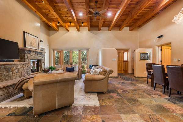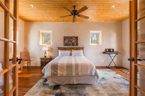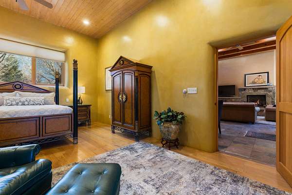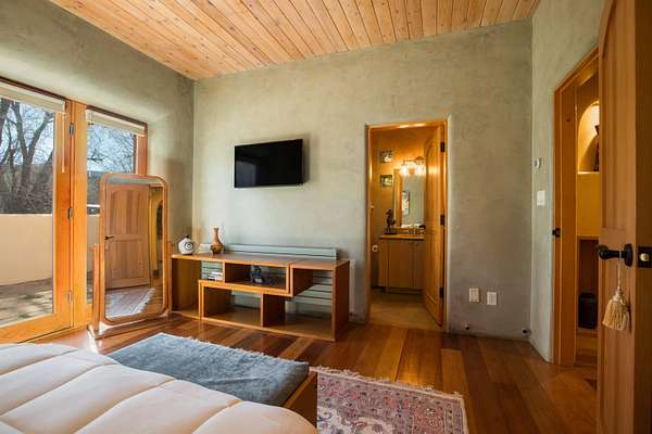 Welcome to Simple Elegance in Taos!! Set within the breathtaking high desert landscape of Taos and minutes from the Plaza. This extraordinary first time on the market, private estate offers a rare blend of timeless Northern New Mexico architecture, artisanal craftsmanship, and self-sustaining luxury. Built by Paul Rotman with substantial 18-inch thick Rastra Block walls, the residence embodies the enduring character of traditional adobe-style design while incorporating refined modern comfort. From the moment you enter through the handcrafted adobe entryway constructed with approximately 100-year-old bricks, the home reveals a level of artistry rarely found in traditional builds. Fourteen-foot ceilings, graceful coved ceilings in the kitchen, and diamond-finish plaster walls tinted with natural mineral pigments create a warm, sculptural interior that reflects the region's rich architectural heritage. The chef's kitchen is both bold and elegant, featuring granite countertops with full bullnose edges, custom cherry cabinetry, double ovens, Wolf range cook top and an intimate breakfast nook. Living spaces are anchored by gas fireplaces and custom stonework by renowned artisan Bob Loveless, complemented by natural stone tile flooring and expansive light-filled gathering areas including a tranquil sunroom. The primary suite offers a luxurious retreat with two primary closets and distinctive green marble accents in the bath, while upstairs cherry wood flooring adds warmth and refinement. Comfort throughout the home is provided by radiant floor heating, supplemental wall heaters, and a Navien high-efficiency boiler installed in February 2026. A charming 1 bath, 1 bedroom casita with tongue-and-groove ceilings crafted from 400-year-old reclaimed wood provides exceptional guest accommodations or private retreat space. Beyond the residence, the property unfolds into an extraordinary multi-use compound. A heated three-car garage, artist studio, woodworking shop with professional dust collection system, and fitness room with full bath and laundry hookups create unmatched flexibility for creative pursuits, wellness, or home-based enterprises. The grounds themselves form a true Taos sanctuary. With 7+ acres with irrigation rights and mature gardens and landscaping surround a productive orchard of apple, pear, apricot, cherry, peach, and plum trees, alongside flowering perennials and majestic Austrian pine, Colorado blue spruce, and bristlecone pines. Additional agricultural features include a tree nursery, chicken coop, bee house, and hoop house. Designed for both sustainability and independence, the estate includes two wells (one solar powered), three cisterns, a five-zone in-ground irrigation system, RV hookups with water and 30-amp service, and a back porch pre-wired for a hot tub-perfect for enjoying the quiet beauty and star-filled skies of northern New Mexico. This exceptional offering represents a rare opportunity to own a private high-desert compound where craftsmanship, land stewardship, and luxury living come together in one remarkable Taos property.