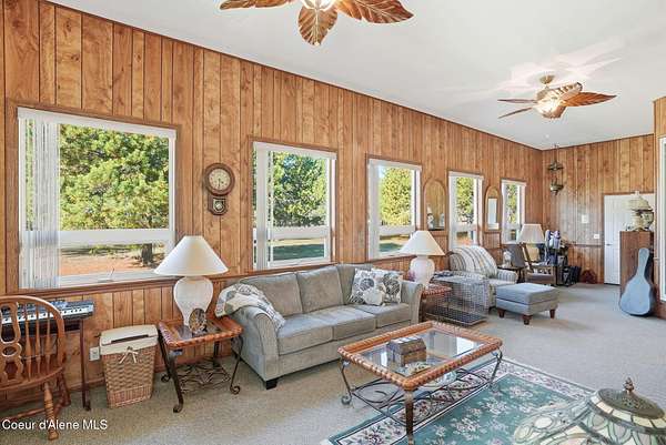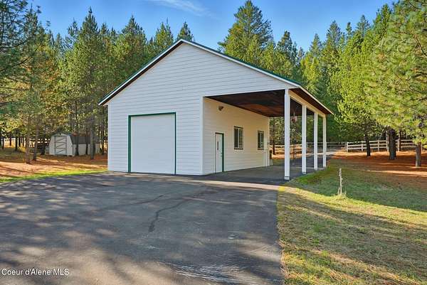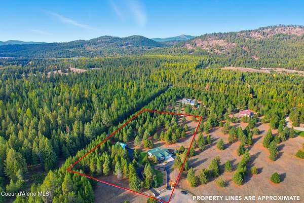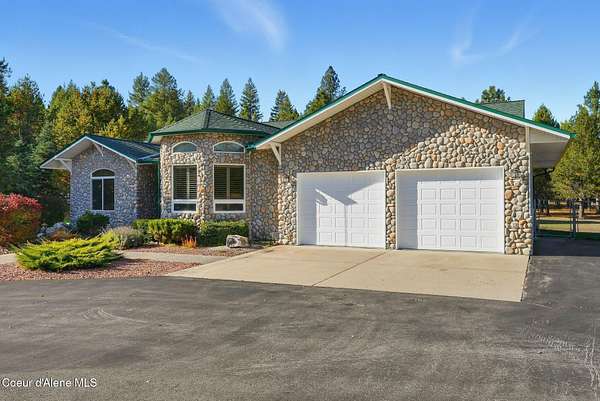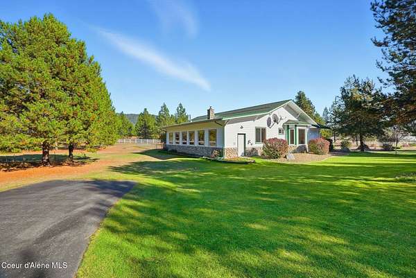 Experience refined North Idaho living in this beautifully maintained custom home on 5 manicured acres bordering public land, just minutes from Round Lake State Park & only 20 min to Sandpoint/30 min to Coeur d'Alene. Designed w/meticulous detail, this single-level residence offers 3 spacious BD & 2 well-appointed BA, blending comfort & elegance. Recent upgrades inc. new exterior paint, new metal & shingle roof w/heated valleys, high-efficiency furnace & A/C, new well pump, computer-controlled irrigation, & tastefully remodeled BA. The fully fenced property showcases luxury vinyl fencing, estate-style landscaping & rock accents. Vaulted ceilings, 8-ft doors & tile flooring w/hydronic heat enhance the open, inviting interior. The gourmet kitchen feats. granite, island, breakfast bar & plantation shutters. The luxurious primary suite offers a fireplace insert & jetted tub. A 2-car garage, 20'x33' insulated shop w/ 220V power, RV hookups, greenhouse & water feature complete this estate