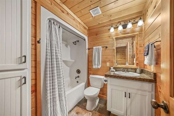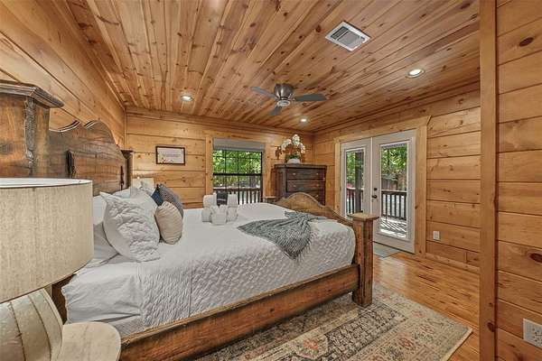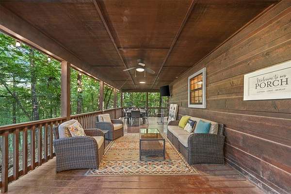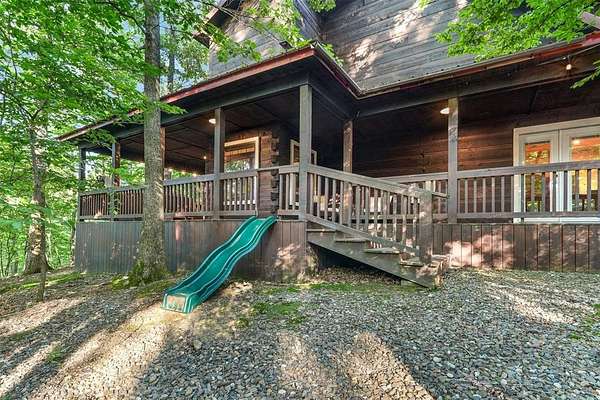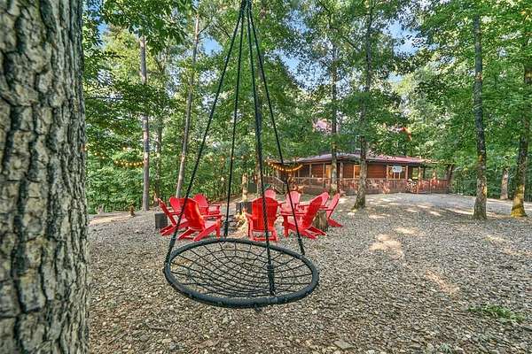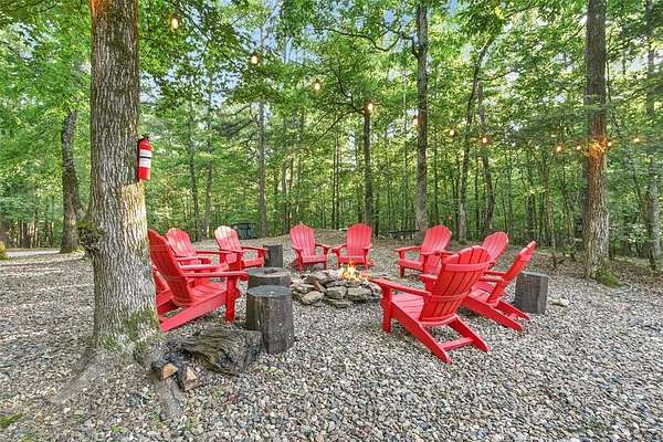 "Just what I needed" is a real log cabin, nestled in the back of Timber Creek Trails on 1.8 acres adjoining the OAUCHITA NATIONAL FORREST and beside a beautiful creek! This successful short term rental property has been completely remodeled. Updates include: Both HVAC units were replaced within the last year, All new kitchen appliances and washer & dryer, outdoor grill, and hot tub in the last 3 years, Added an exterior door in the master bedroom, Updated the Master Bath, Patio Dining for 12, Updated decor, Upgraded Horsheshoe pit, Disc Golf and other outdoor games. It is a secluded retreat where you can wonder off into nature and enjoy true peace and quite. This beautiful three bedroom cabin that sits at the end of a road with no traffic and no nearby neighbors would as make a perfect second home or primary home. This is a cabin that you hope it shows outside and you are forced to curl up next to the wood burning fireplace with a blanket, hot chocolate and a good book. The large circle driveway has ample parking for your ATV and boat trailers. Outside you and your family can enjoy roasting marshmallows around the campfire, play horseshoes, and even play a round of disc golf on the 9 hole course. Enjoy a relaxing dip in the hot tub located on the covered wrap-around porch. Experience the beauty of the 90 foot tall pine trees swaying in the wind where you will feel you are miles away from everything, yet just a few minutes from Hochatown's dining, entertainment and recreational activities. This exclusive destination property provides private, quiet serenity that will make you want to stay forever. TAKE A TOUR BY VIEWING THE WALKTHROUGH VIDEO. For a video link, contact the Listing Agent