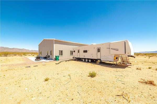 Off Grid 4,000sqft Insulated Steel Shop on 40 Acres! Built in 2020 with 2,500sqft Garage Shop and 1,500sqf Bardominium Future Living Space. Living Space needs finishing (plans included). Full 24 Panel Solar Power System (Owned). Great roads to this property- just .25 mile off Pavement. Building is fully plumbed, septic tank installed, plus Exterior RV Dump. 2,500 Underground Water Tank and Pressure Tank for Water Haul Setup, Jet Pump, Multistage Water Filtration + Softener. Electrical rough in Completed with Electric Panel + Sub Panel for Living Space. The Living Space Features: Firewall Separation, Windows, Doors, Plumbing Drains and Exterior Full Width Patio. The Shop Features: 3 RV Size Garage Bays with 14ft Doors, LED Lights,Insulated and Cement Slab w/ Parking Aprons. Move In Ready Remodeled 38ft 5th Wheel RV with 2 Slides: 2 Bdrms, Solar Power + Generator, Lithium Battery, Water Filtration and Plumbed to Septic. Off Grid=Solar, Wind +Generator Power. Security Cameras + Phone Notification Alerts (Solar Based + Cellular Connected)=Easy Remote Monitoring. Security Solar Lights + Entry Gate Light+ Security Camera. Owner May Carry with $100K Down. Call your realtor for personal tour.