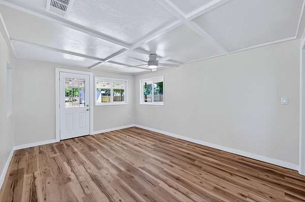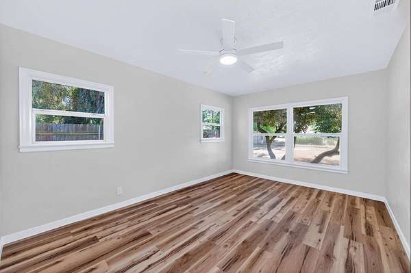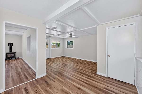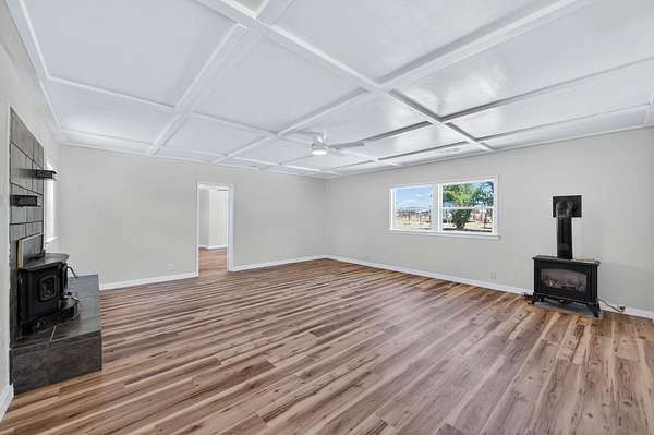 Country living in this charming 3 bedroom 2 bath home on 1.58 acres with an extra 429 sf. detached hobby room that could serve many functions: you could add a bath for a mother-in-law set-up or for extra income. New vinyl plank flooring throughout the home, All new kitchen with new cabinets, granite slab counter tops, brand new stainless steel appliances and lots of storage in the updated kitchen. Formal dining room. Cozy fireplace in the large great room. All three bedrooms are huge with ample room for a sitting area. Both bathrooms have been updated. Bright inside laundry room. Fresh paint inside and out. Fully fenced with Gated yard. A dozen fruit trees grace the fenced yard with plenty of room for a vegetable garden. Loads of running room for the kids and pets. The lot is serviced by FID water should you wish to keep small pasture and to water the trees. Large shed out back for your garden equipment.